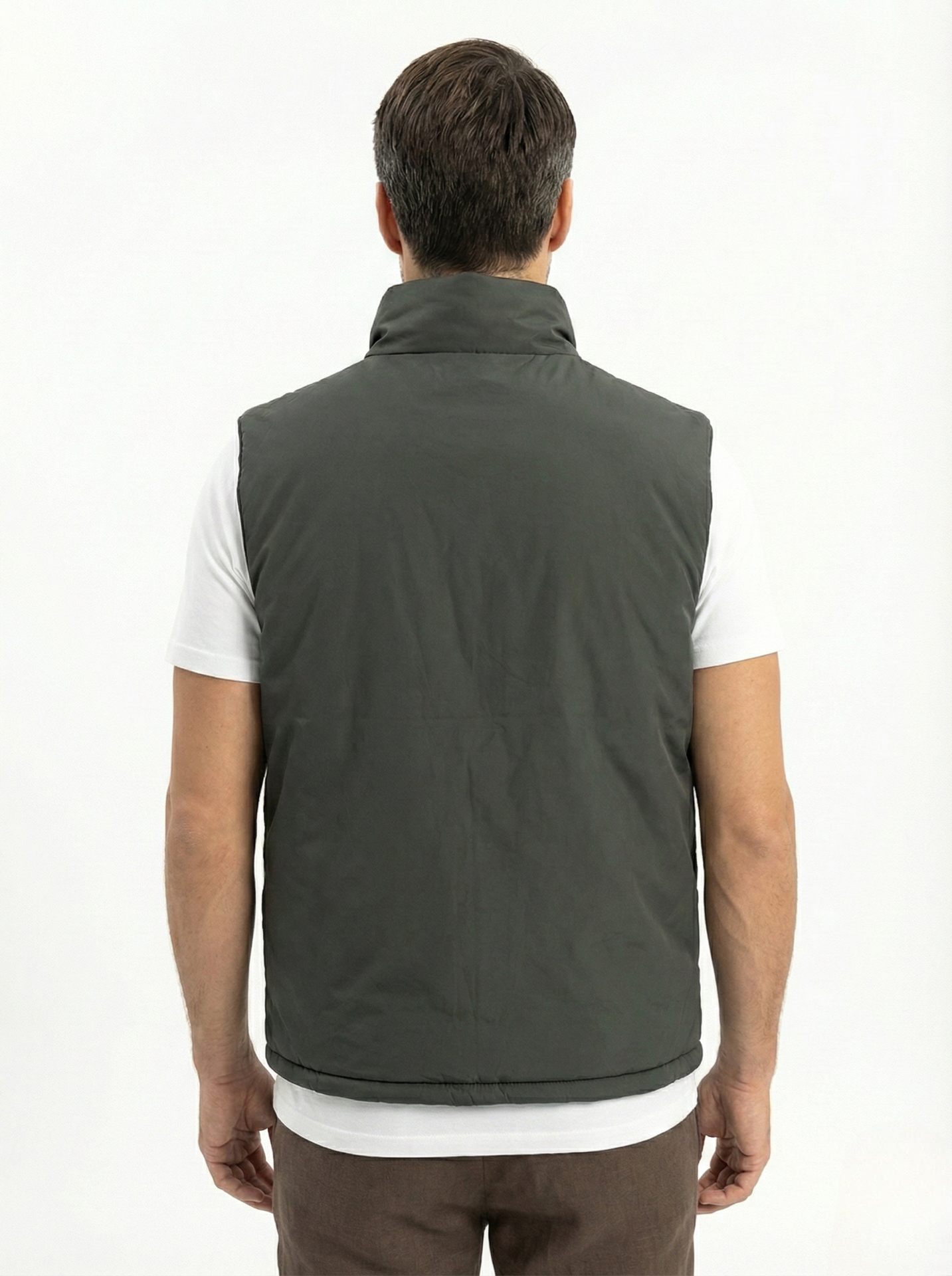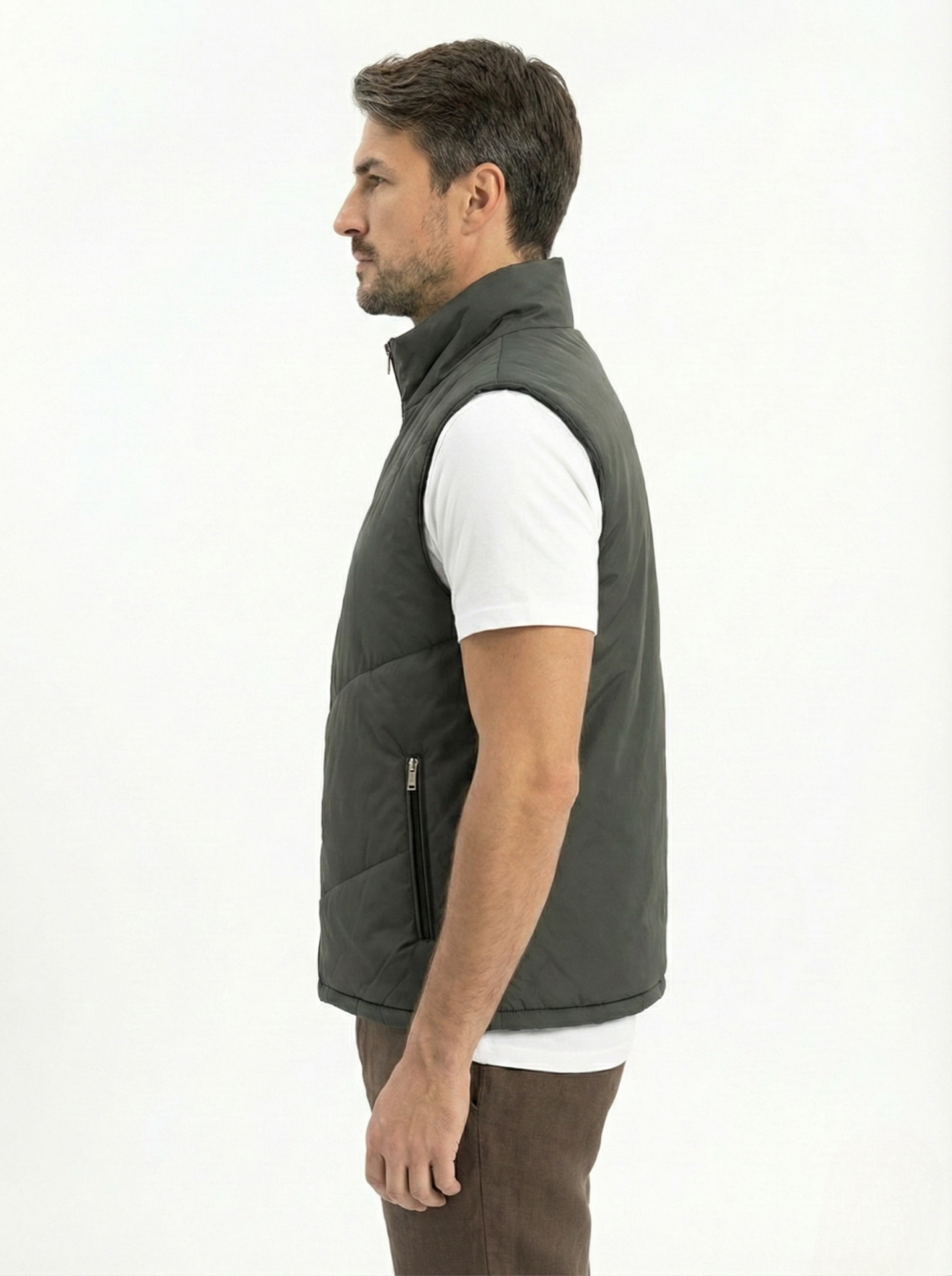 Upgrade your layering game with this olive Quilted Puffer Vest — a sleek and versatile piece designed for modern comfort. Crafted with lightweight insulation and a structured quilted design, it delivers warmth without the bulk. Perfect for transitional weather, this vest pairs effortlessly with sweatshirts, hoodies, or knitwear for a casual yet refined look.