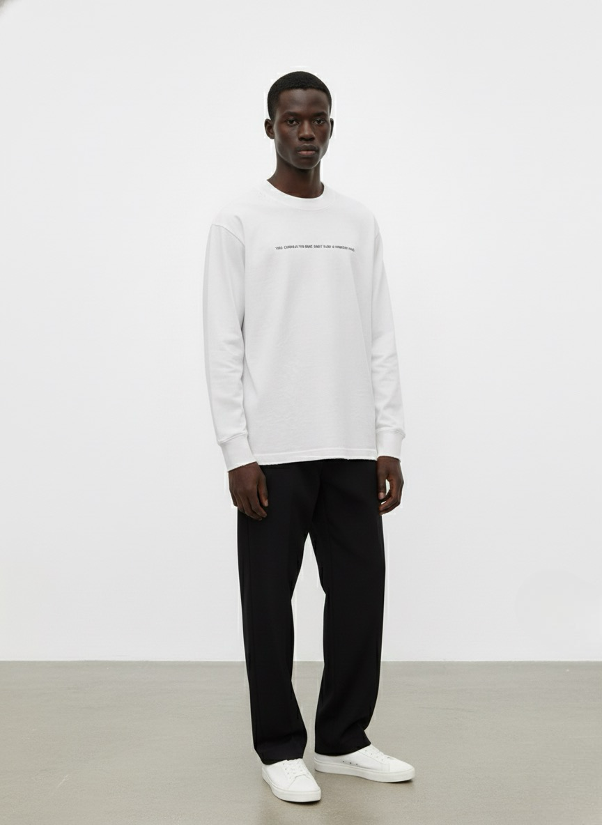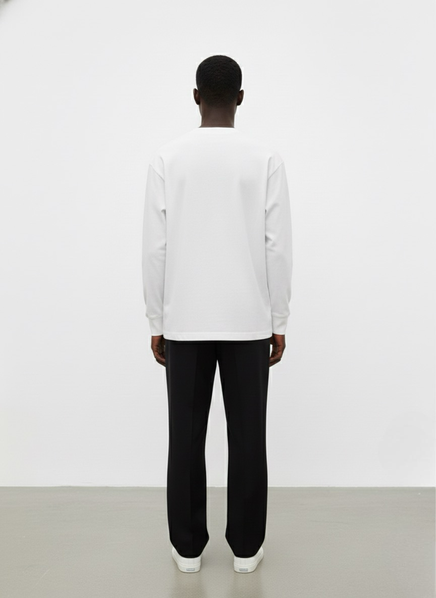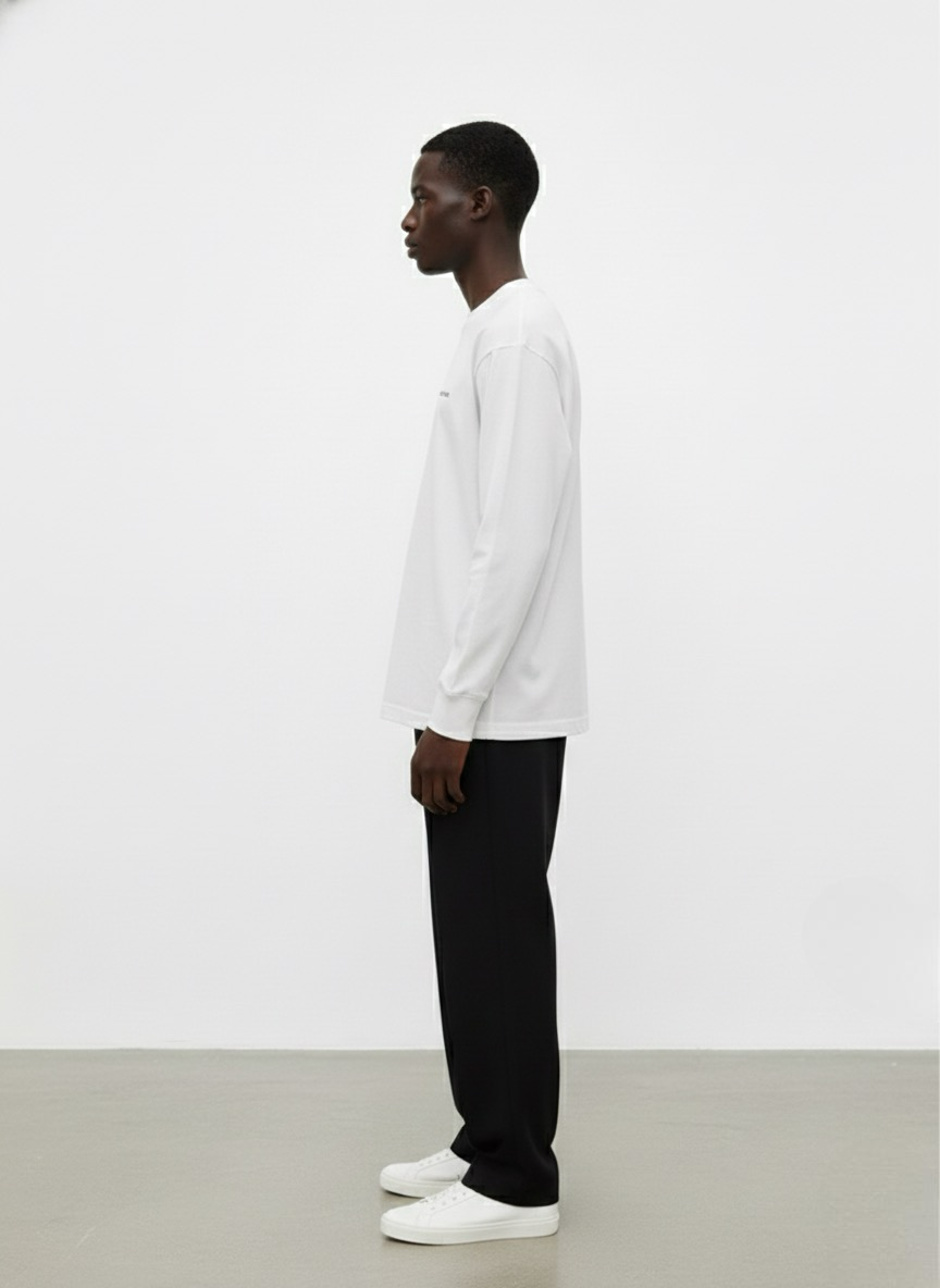 Designed with a clean minimalist aesthetic, this long-sleeve tee brings elevated simplicity to everyday wear. Crafted from premium soft-touch cotton in a crisp Arctic White tone, it features a straight relaxed silhouette with dropped shoulders for a natural drape.