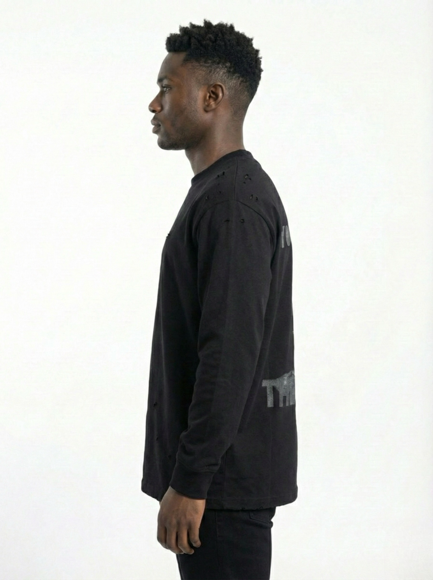 JET BLACK DISTRESSED GRAPHIC LONG-SLEEVE TEE W25N