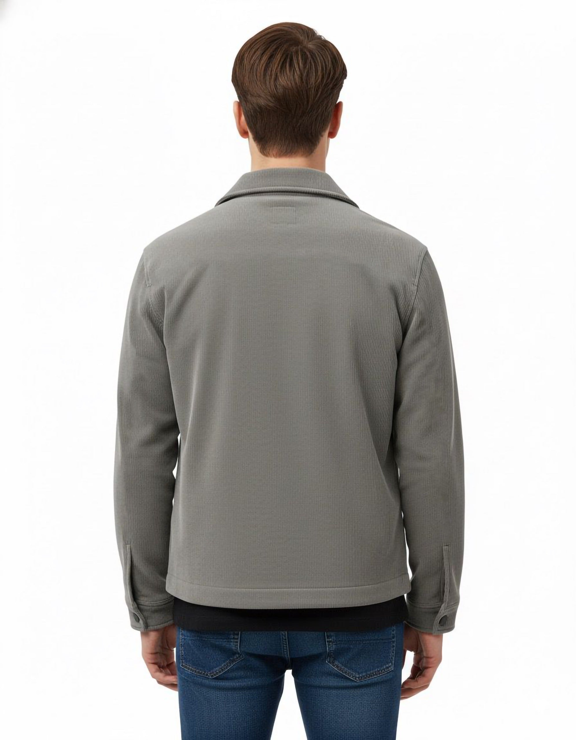 STONE GREY CORDUROY ZIP-UP OVERSHIRT W25N