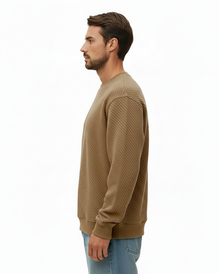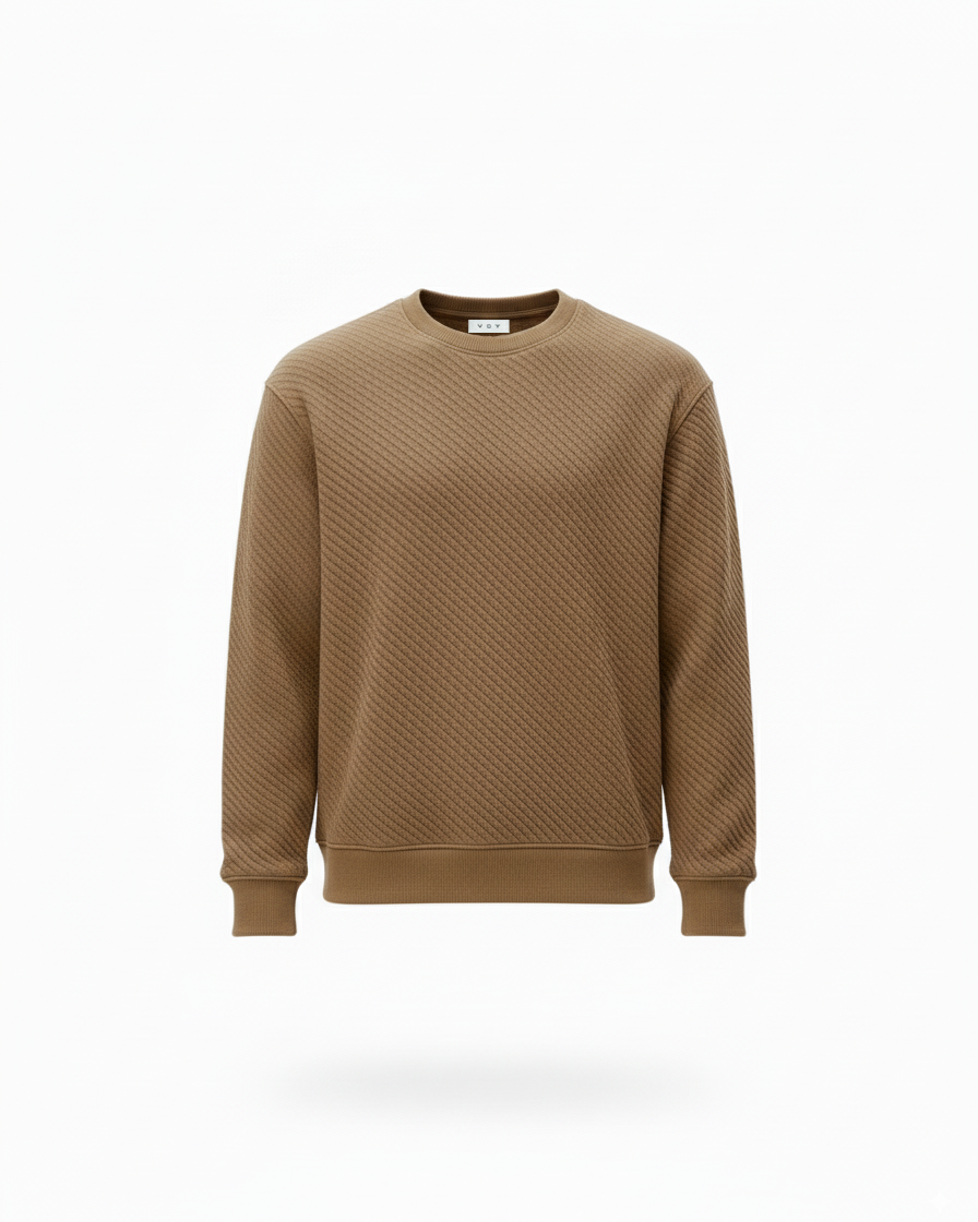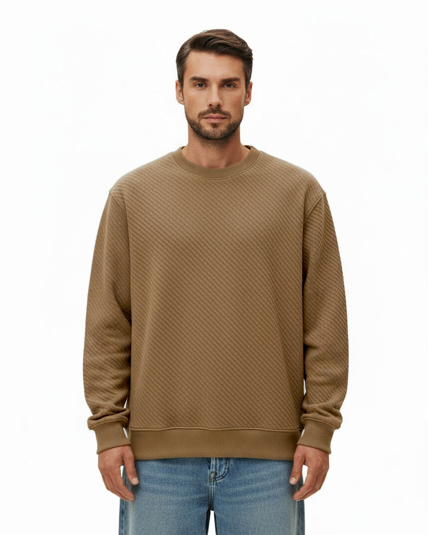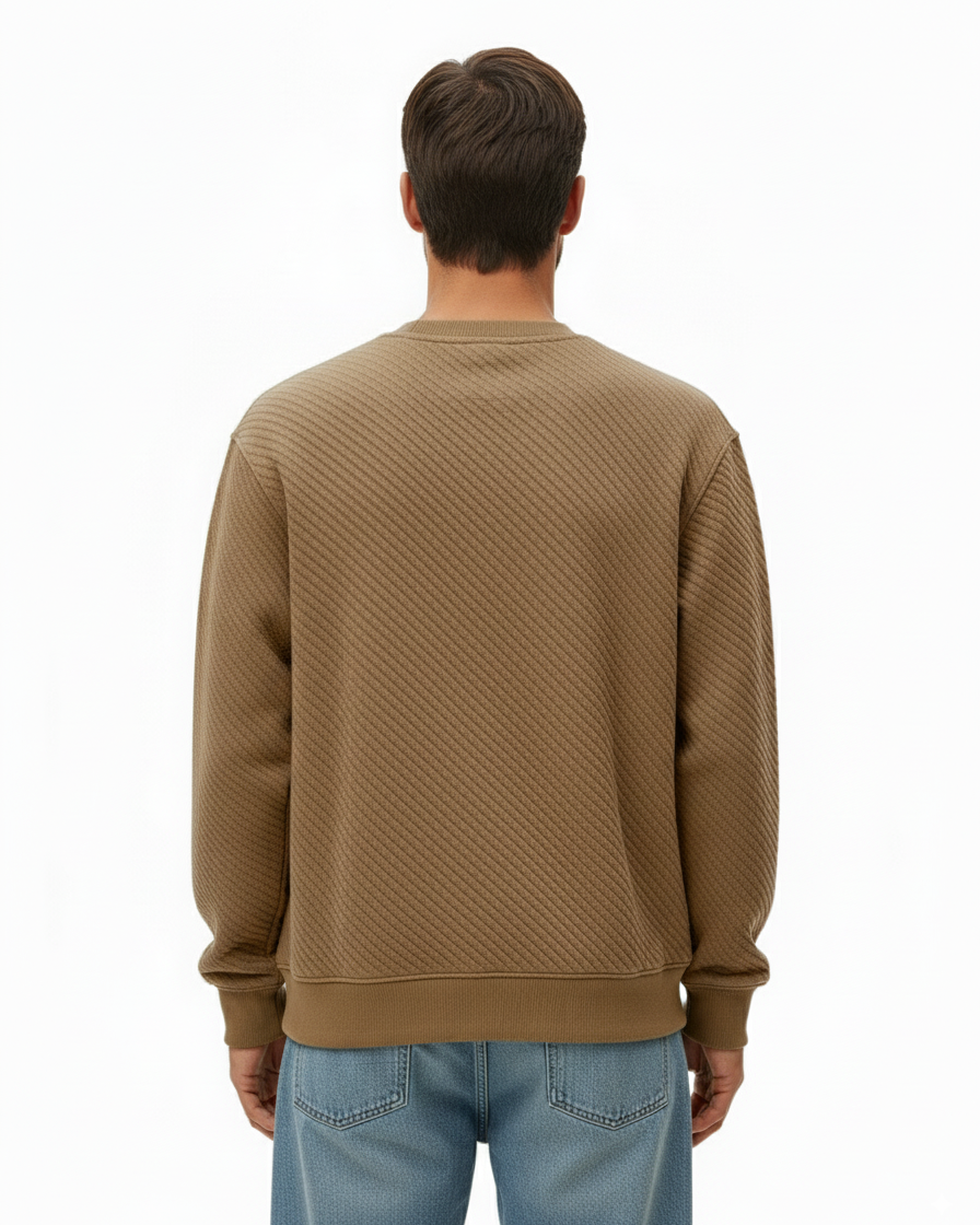 This men’s crewneck sweatshirt combines modern comfort with a premium textured design. Crafted with a textured knit pattern, it delivers a unique look that elevates a wardrobe staple. The relaxed silhouette and ribbed trims make it versatile for both casual wear and streetwear styling. Finished in a rich camel brown, it’s the perfect balance of minimalism and statement detail.