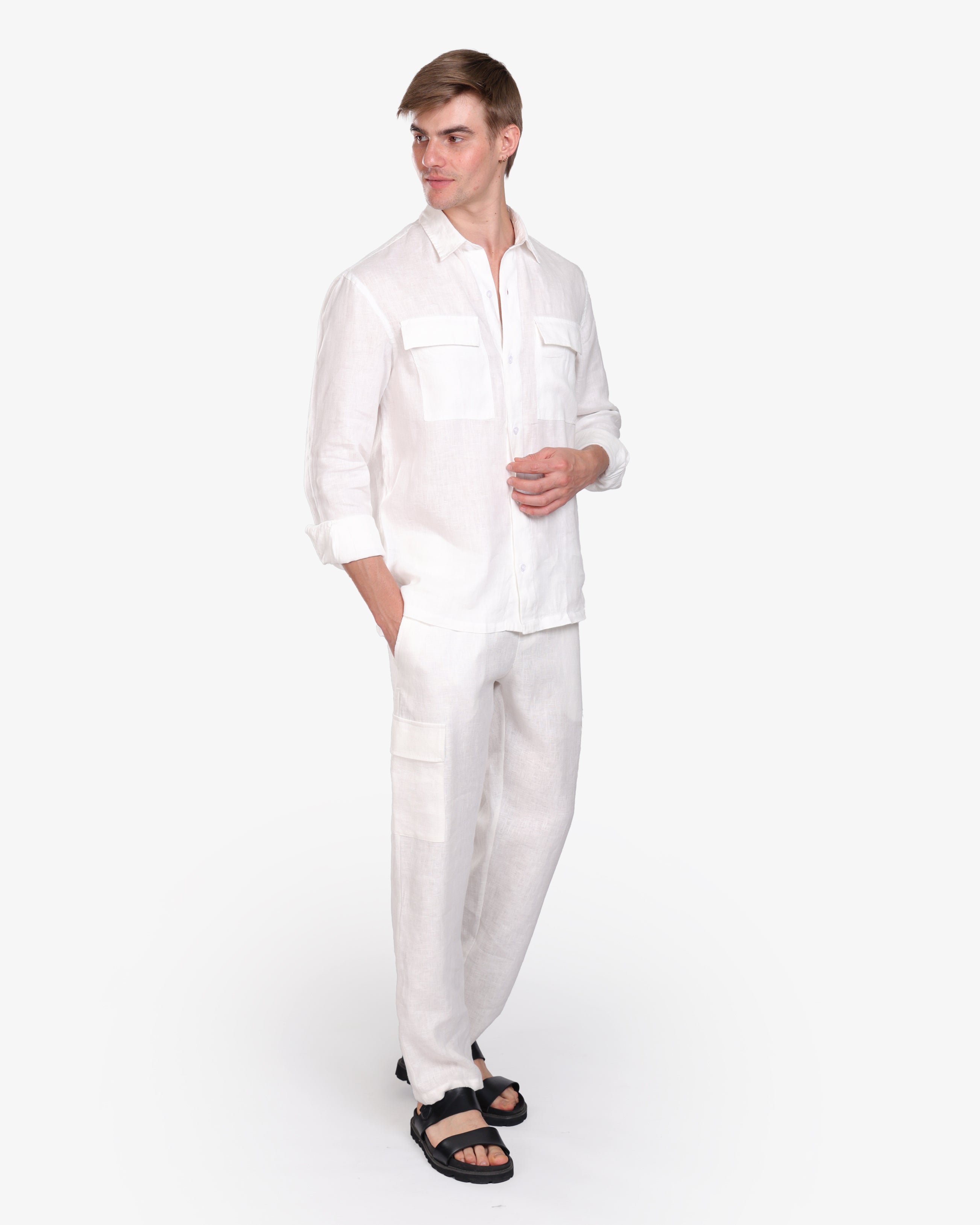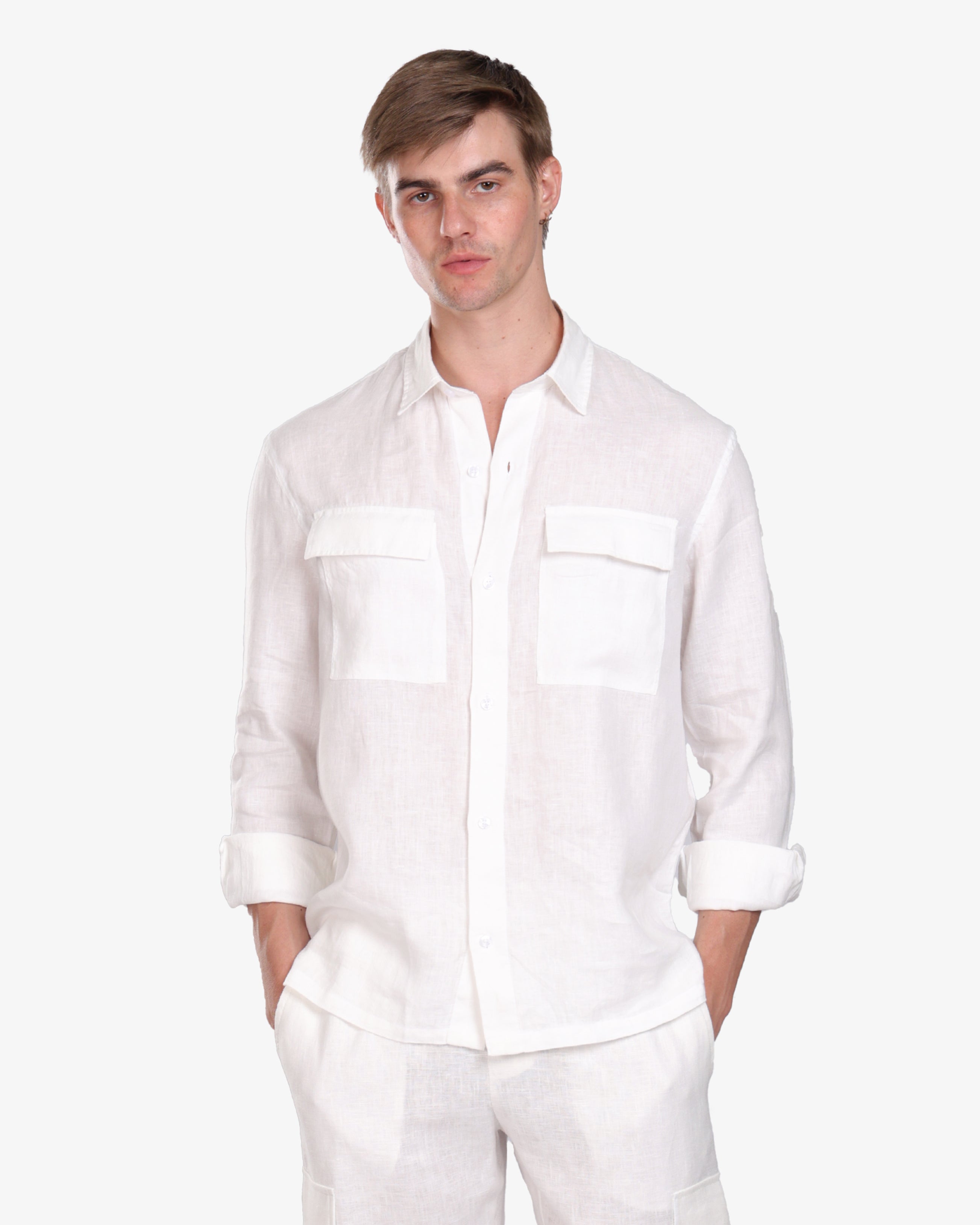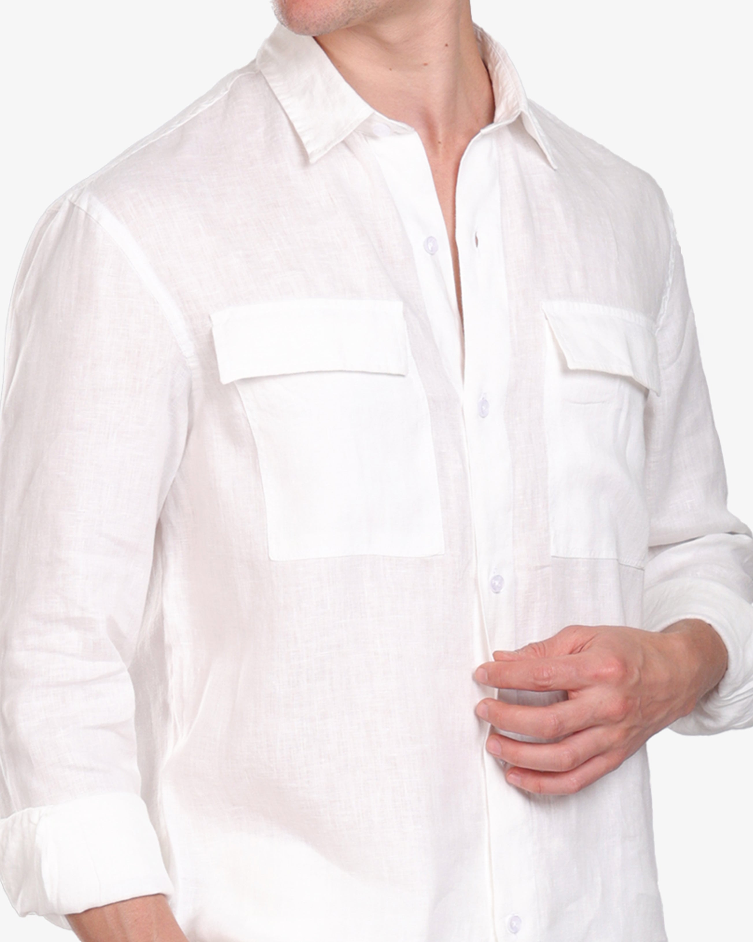 WHITE LINEN-COTTON WORKWEAR OVERSHIRT S26