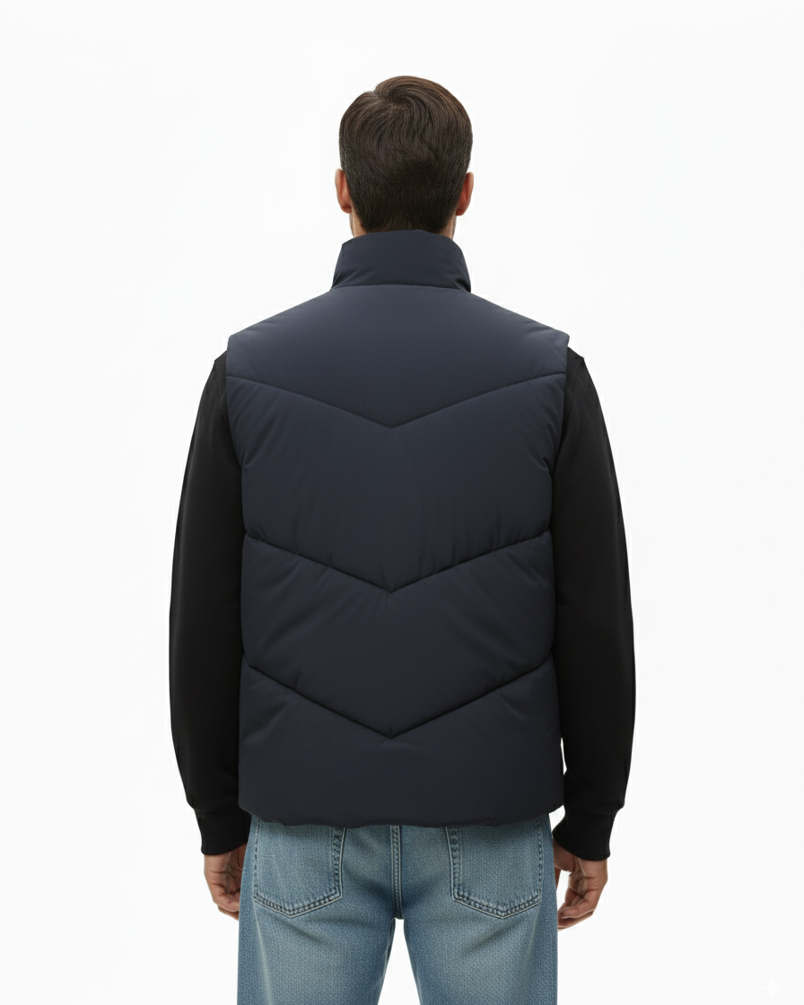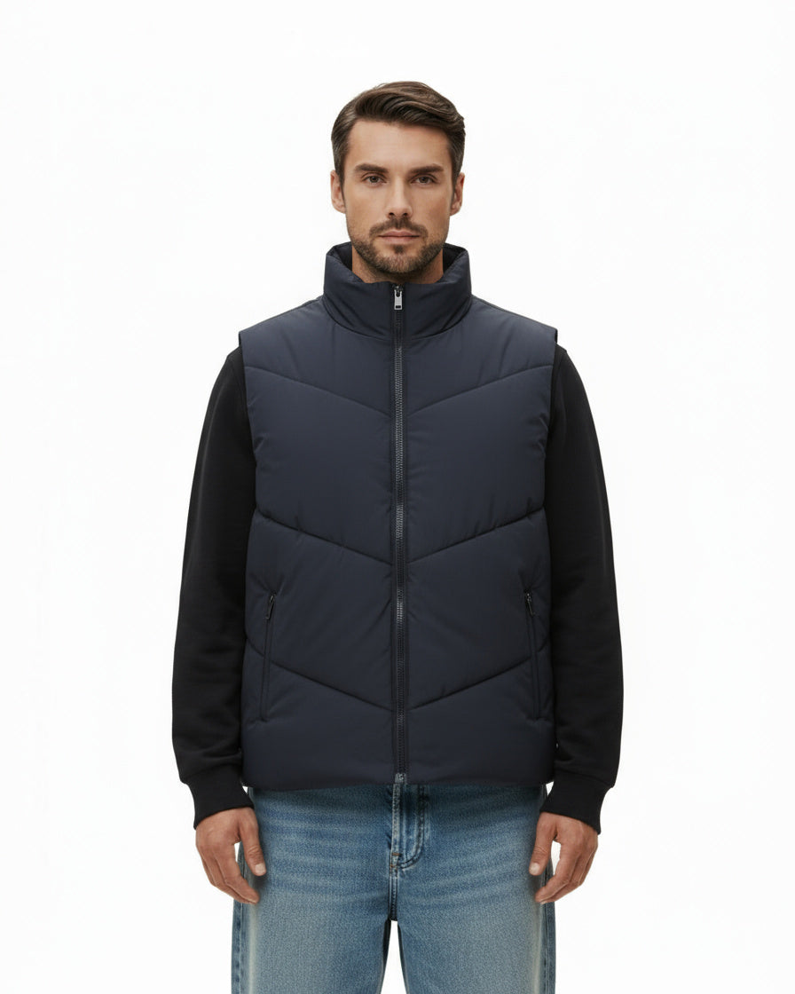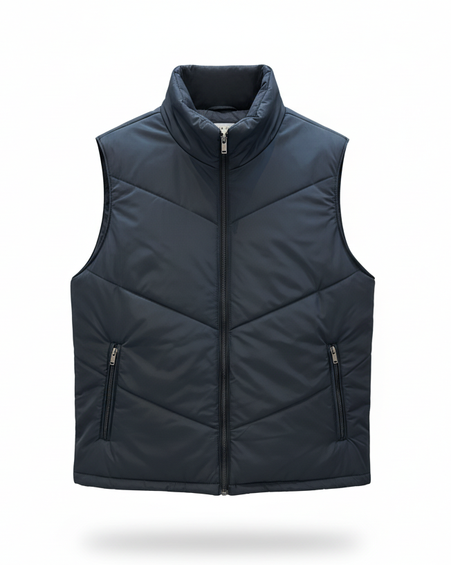 Upgrade your layering game with this navy Quilted Puffer Vest — a sleek and versatile piece designed for modern comfort. Crafted with lightweight insulation and a structured quilted design, it delivers warmth without the bulk. Perfect for transitional weather, this vest pairs effortlessly with sweatshirts, hoodies, or knitwear for a casual yet refined look.