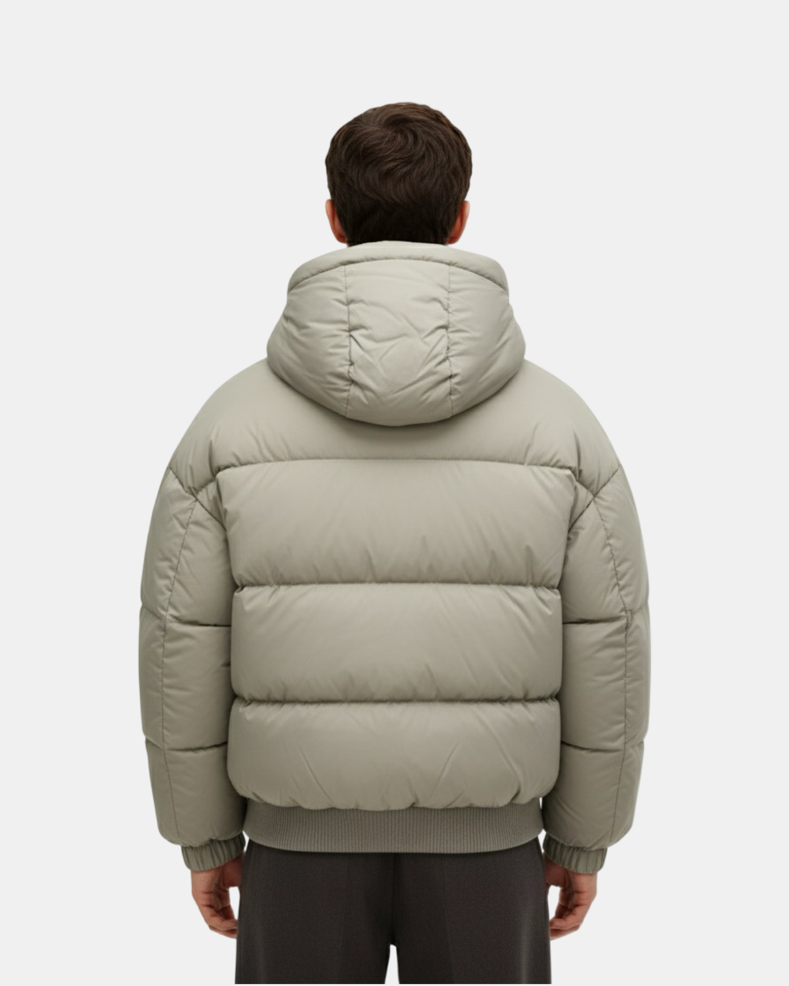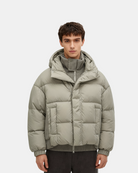 The Sage Layered Tech Down Jacket W25N showcases modern functionality with a refined, structured look. Featuring a distinctive layered collar and detachable hood, this jacket merges technical warmth with sophisticated design. Its sage-toned matte shell and ribbed inserts create visual depth and comfort, making it a standout piece for contemporary winter styling.