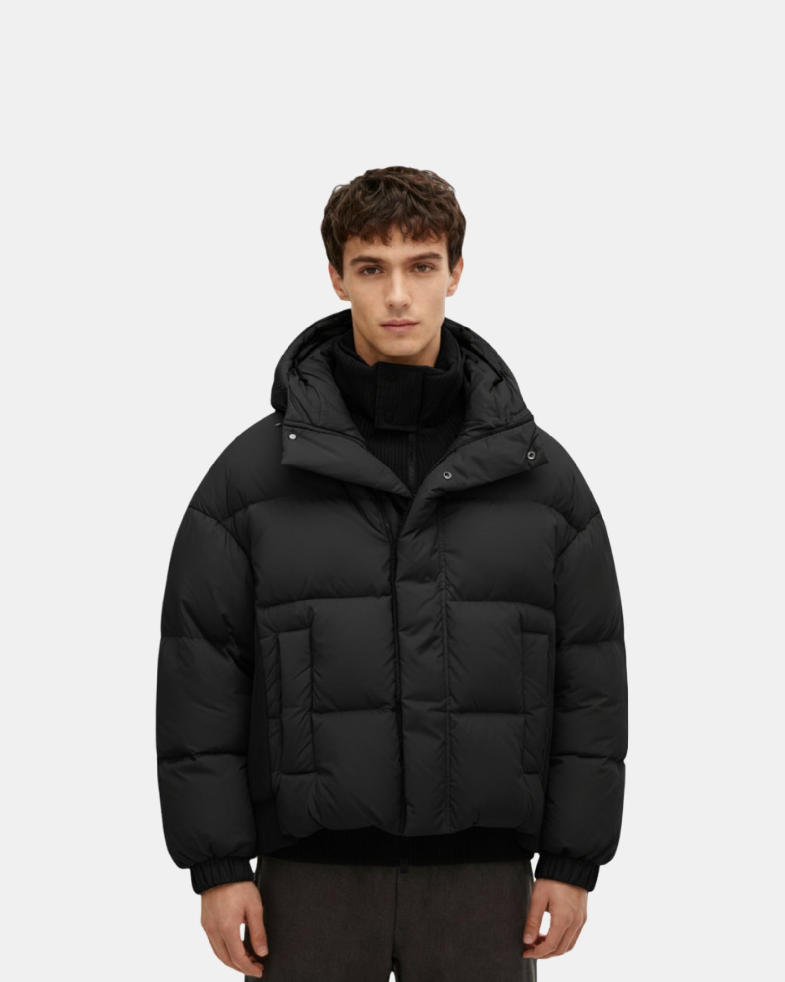 • Dual-layer high collar with integrated knit insert for added warmth