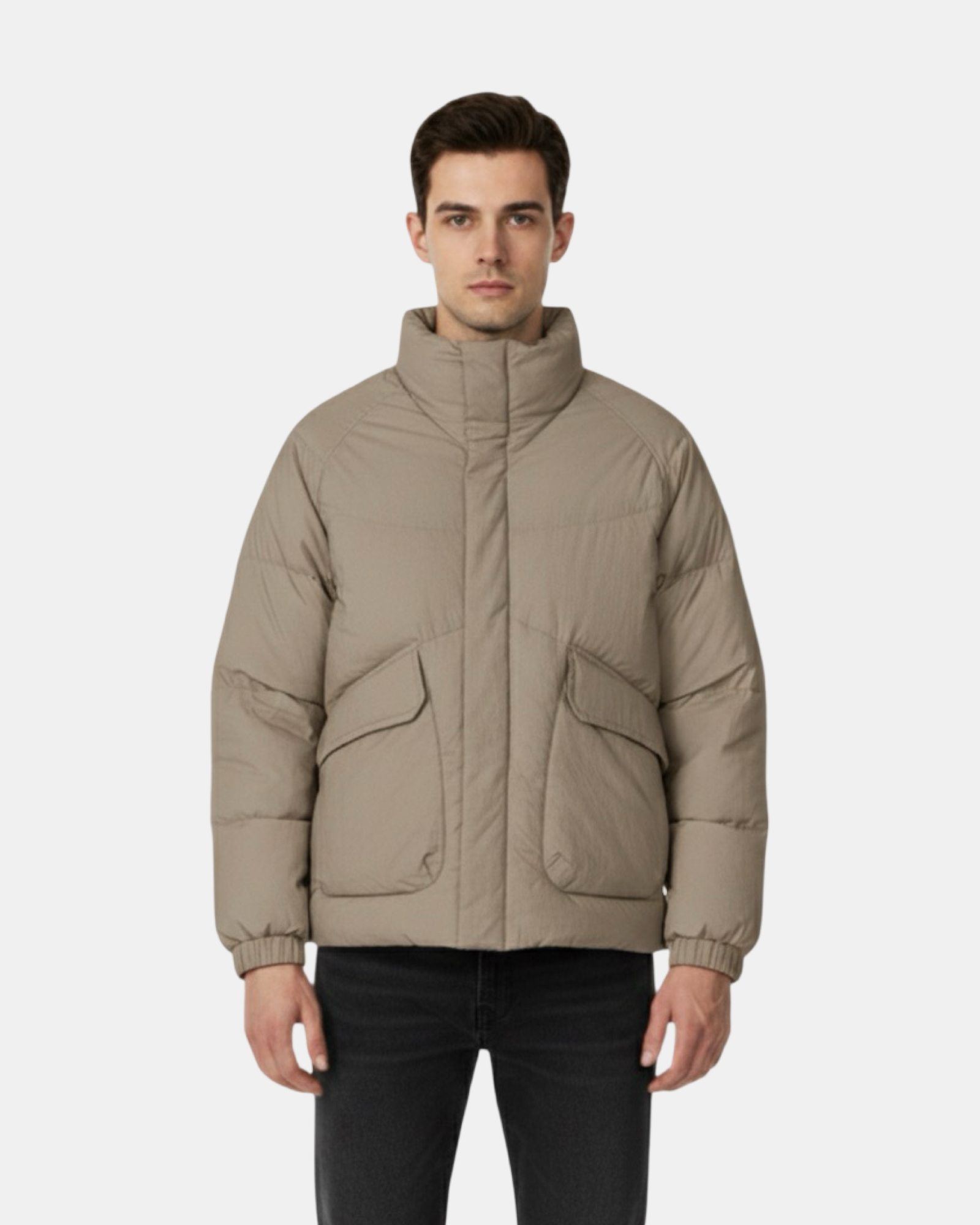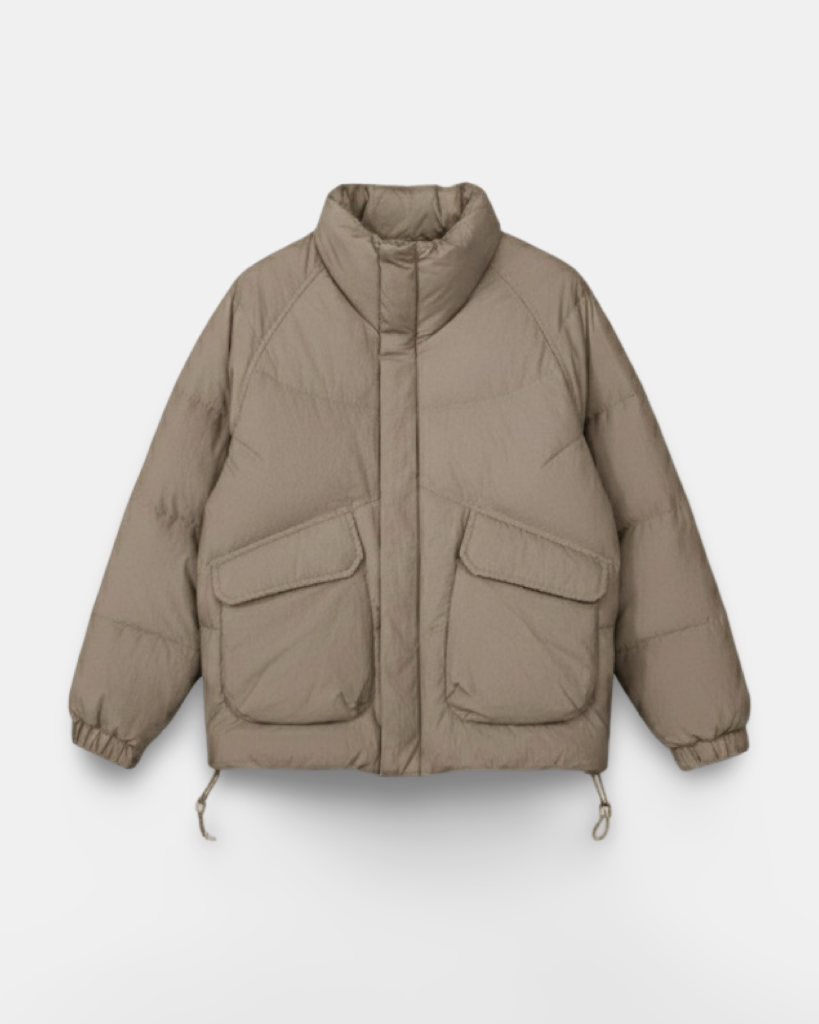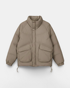 Modern, structured, and built for function — the beige Utility Puffer Jacket is designed to handle colder days with ease. Its oversized utility pockets and clean panel construction give it a technical yet minimal look. Crafted from a matte, water-repellent shell, it delivers lightweight insulation while maintaining a sharp, contemporary silhouette that pairs effortlessly with any winter outfit.
