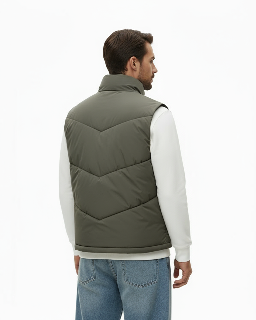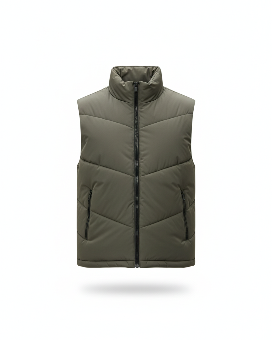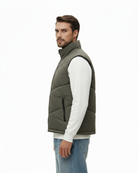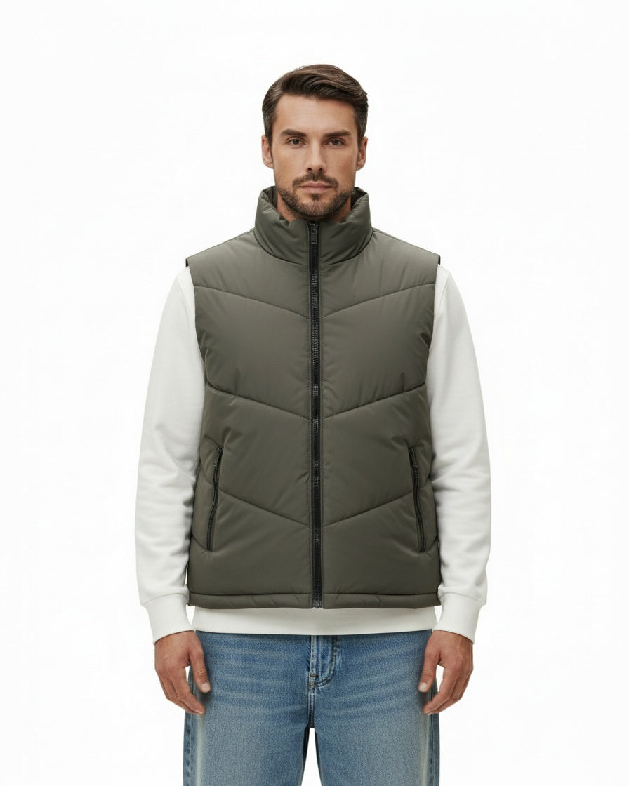 Upgrade your layering game with this grey Quilted Puffer Vest — a sleek and versatile piece designed for modern comfort. Crafted with lightweight insulation and a structured quilted design, it delivers warmth without the bulk. Perfect for transitional weather, this vest pairs effortlessly with sweatshirts, hoodies, or knitwear for a casual yet refined look.