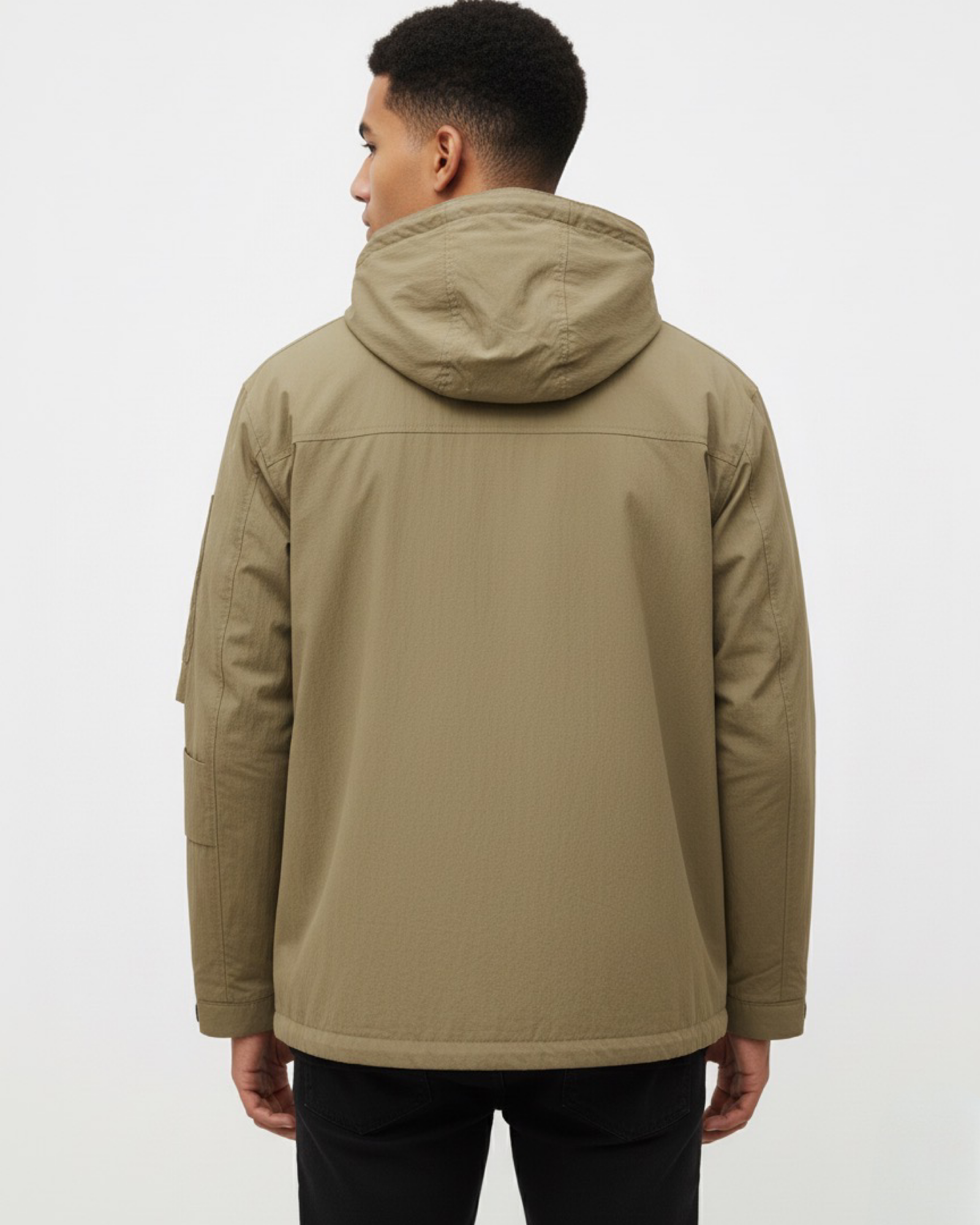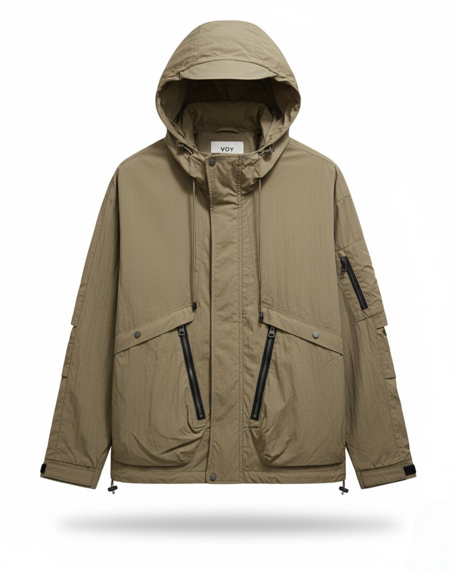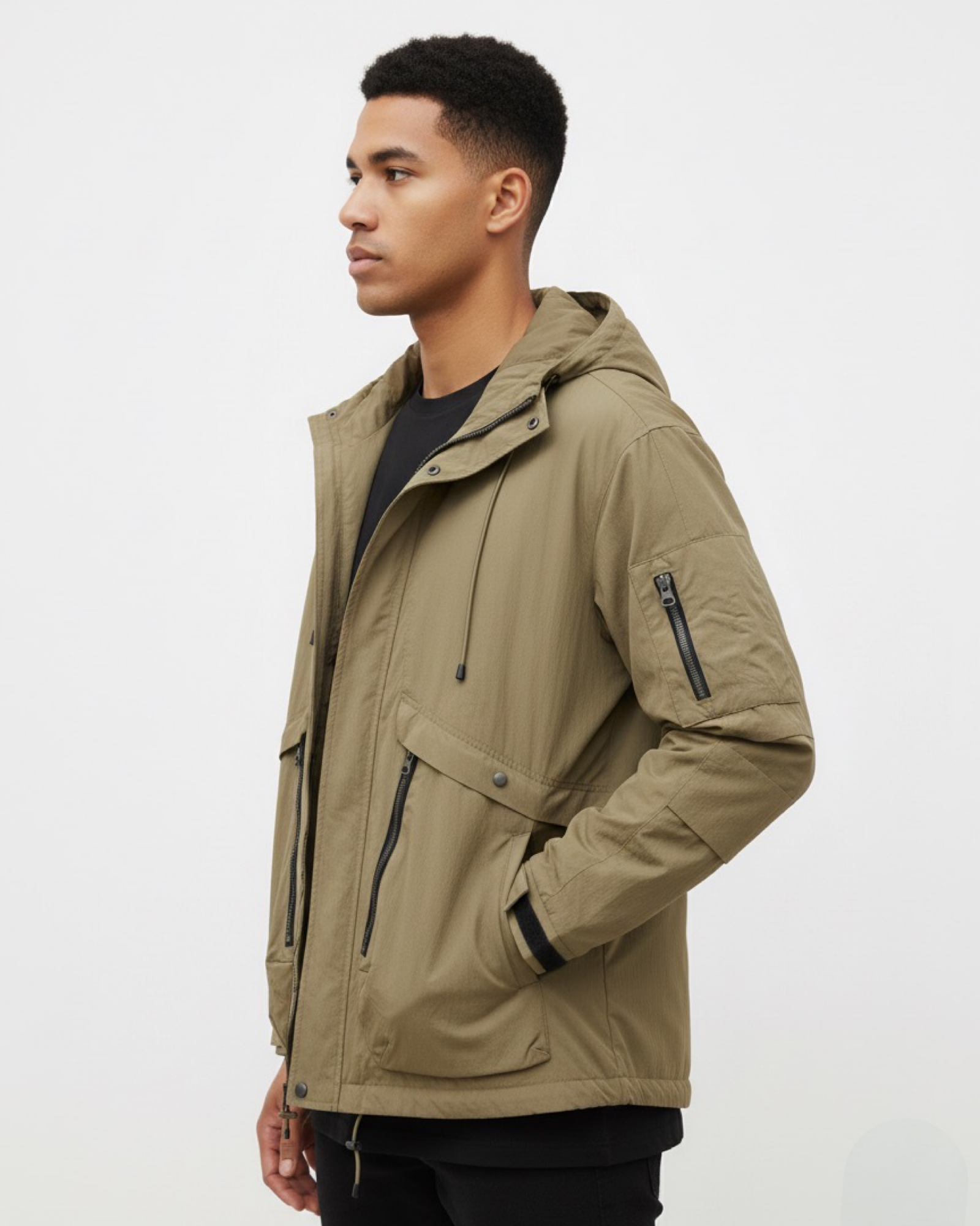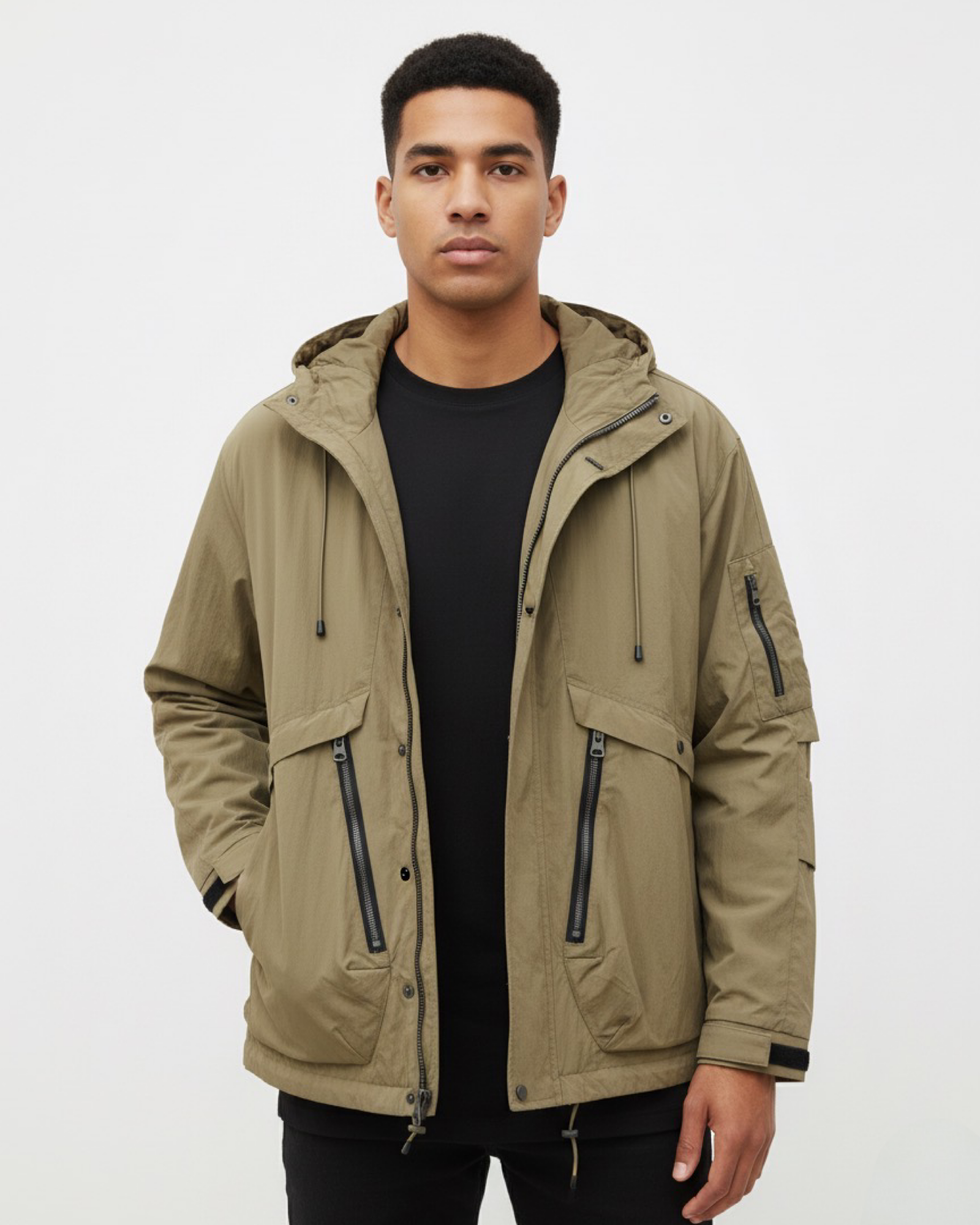 The Khaki Technical Parka Jacket is designed for functionality and modern style. Crafted from lightweight technical fabric, it offers a durable yet comfortable wear with a refined urban edge. Featuring multiple zip and flap pockets, a protective hood, and adjustable details, it’s the ultimate outer layer for everyday versatility.