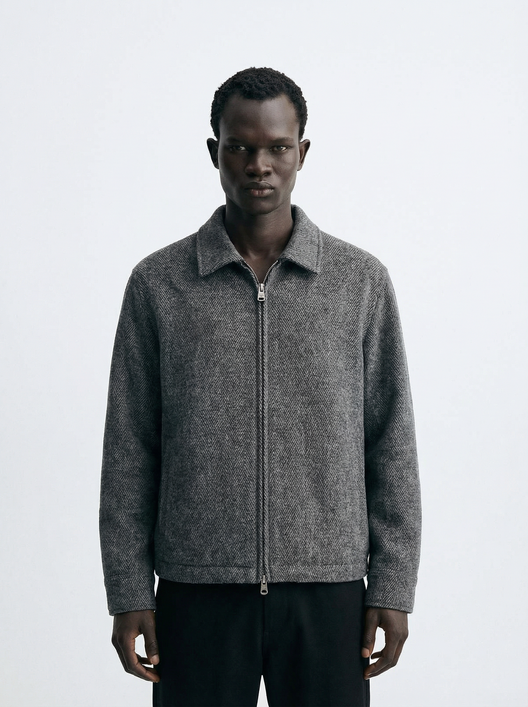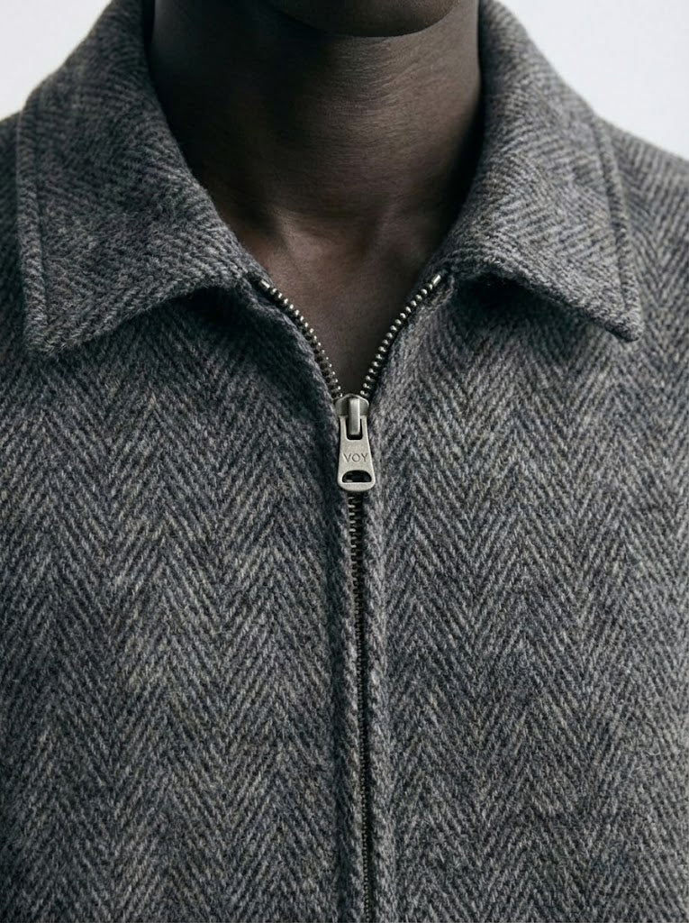 GREY HERRINGBONE WOOL-BLEND ZIP OVERSHIRT – W25N