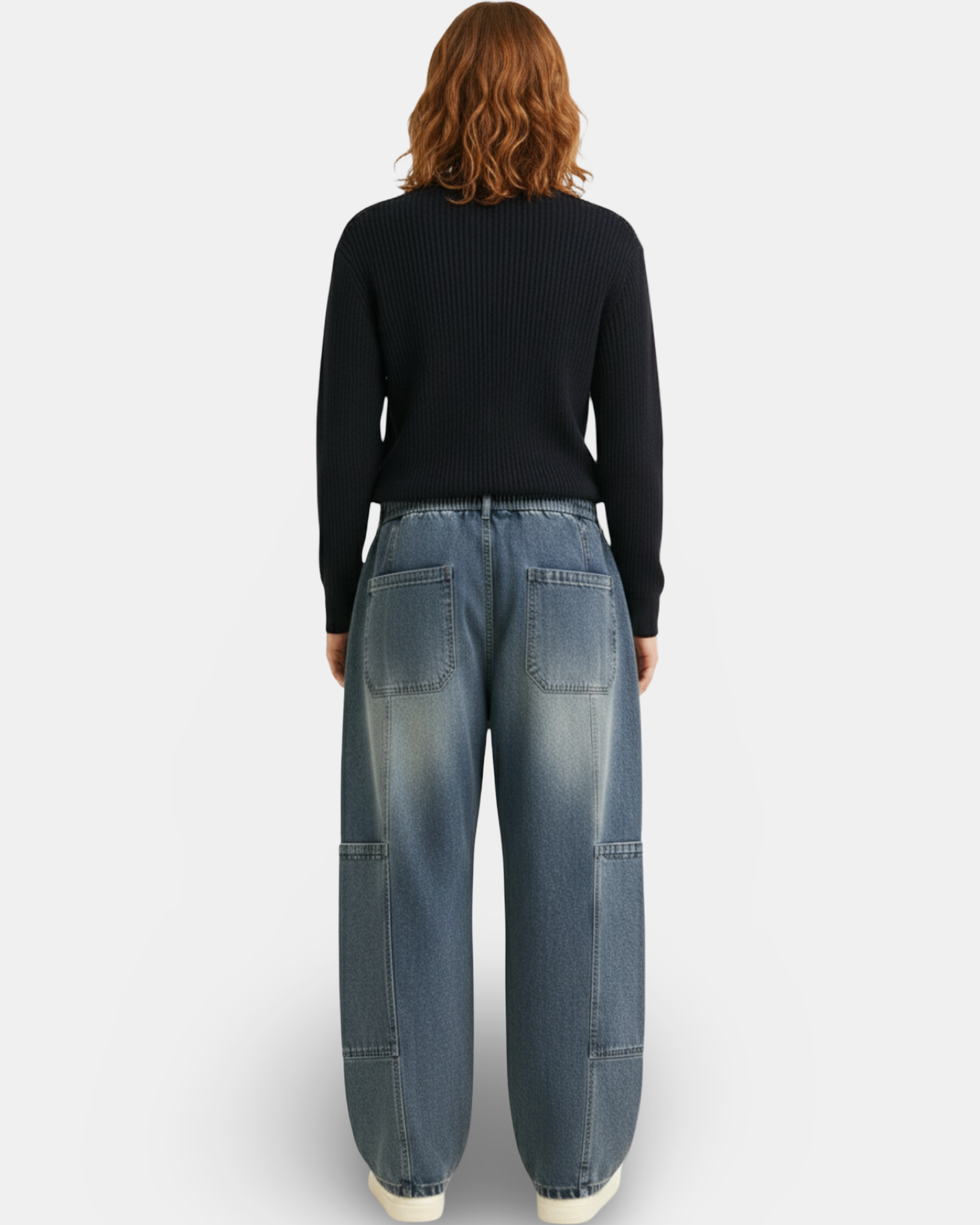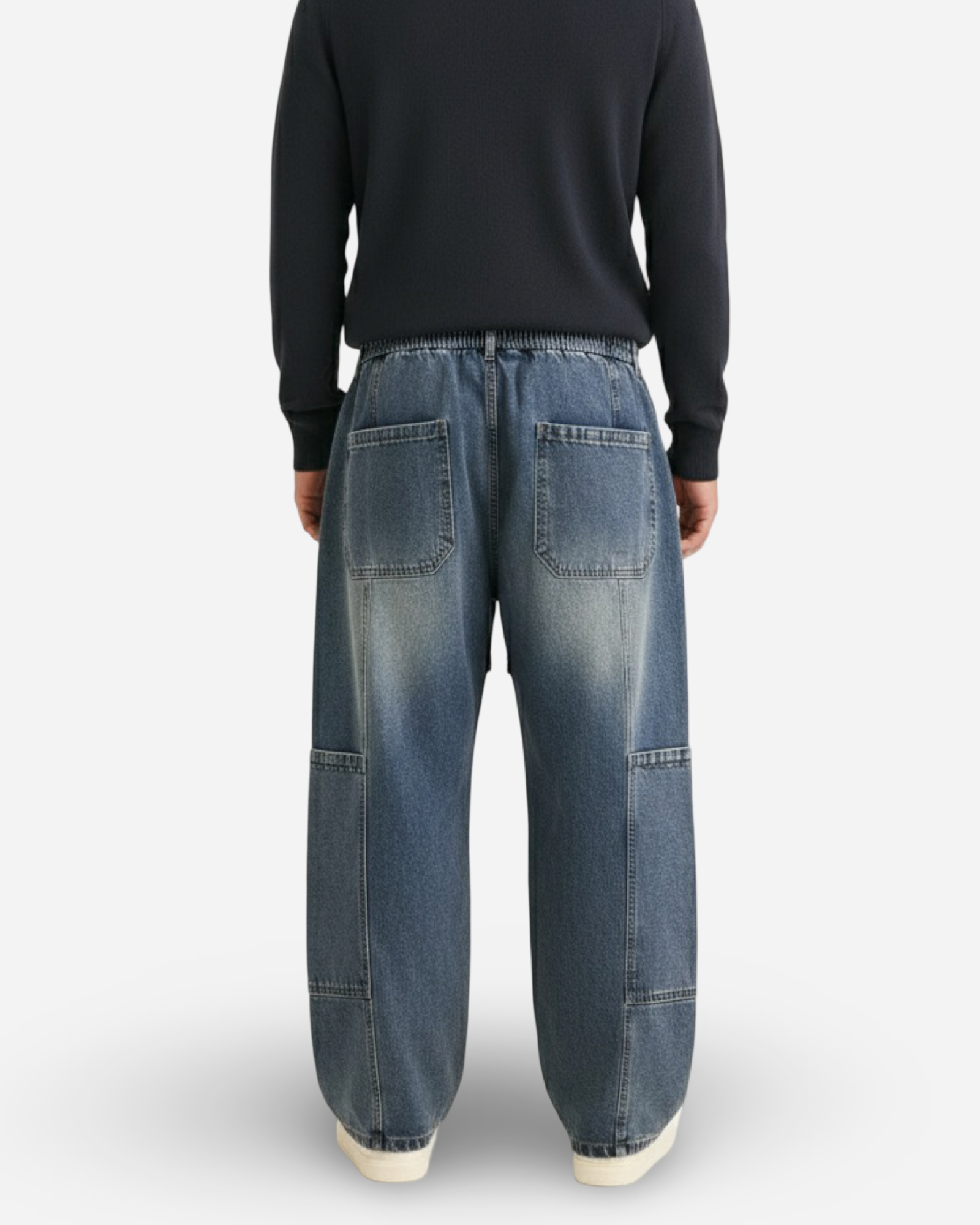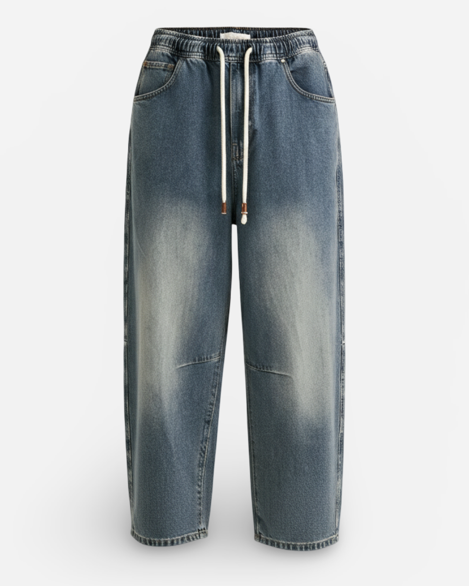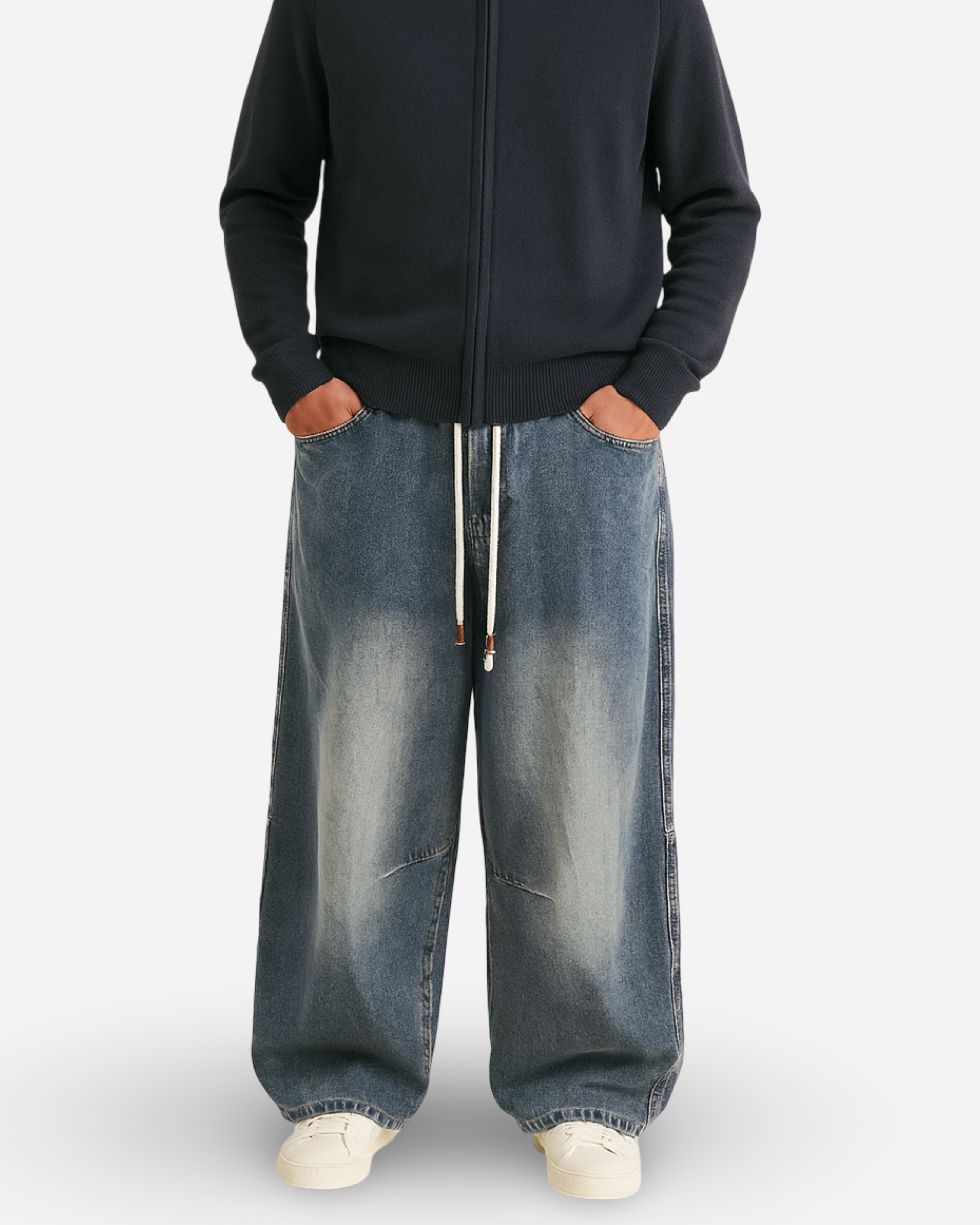 The Light Fade Wide-Leg Denim Trousers bring a modern twist to a vintage-inspired silhouette. Designed with a relaxed wide-leg cut and soft faded wash, these trousers deliver effortless style and comfort. The elastic waistband with drawstring closure adds a casual edge, while the premium denim fabric ensures durability and everyday wearability. Perfect for streetwear looks or laid-back outfits, these trousers balance comfort with contemporary style.