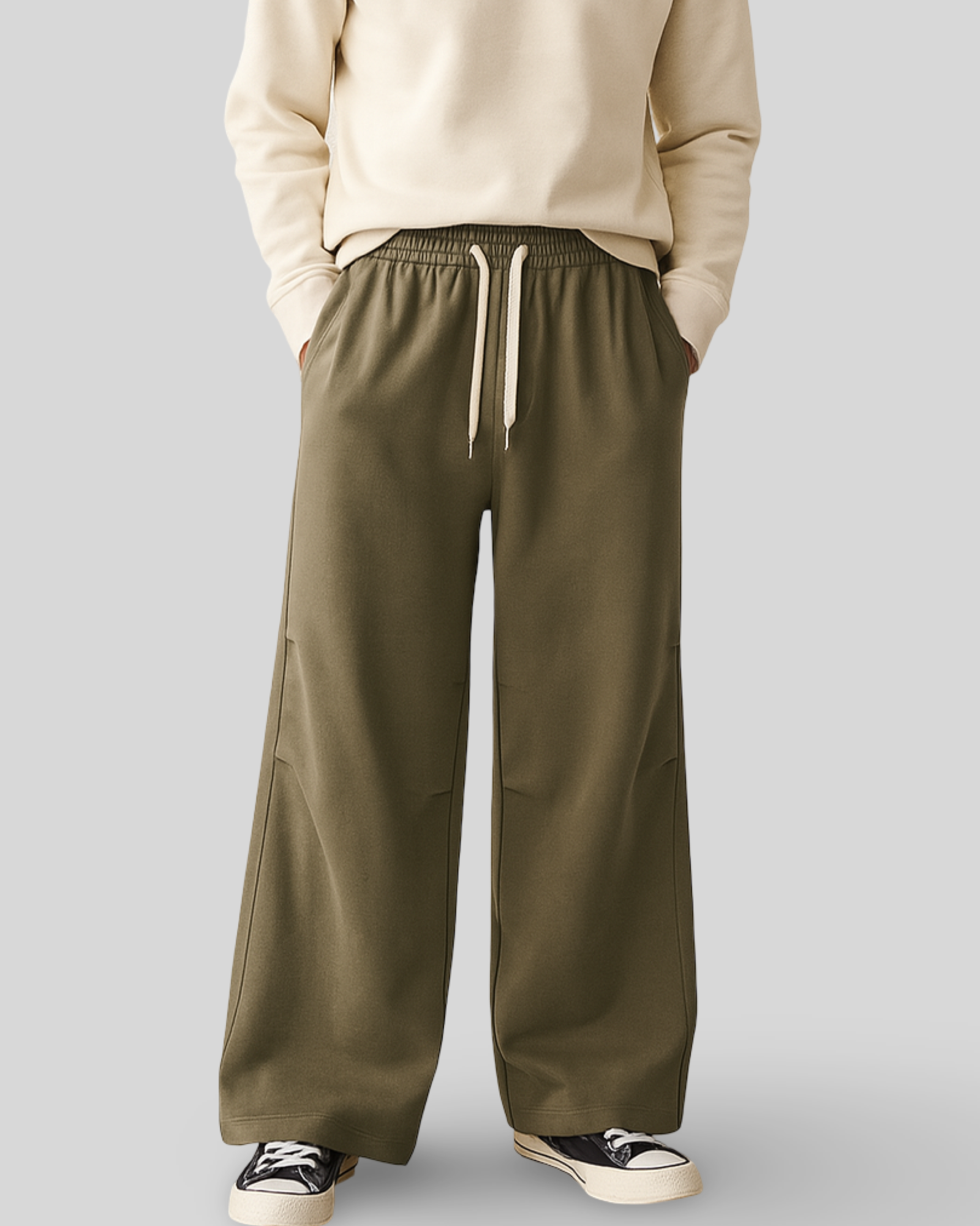 The pants feature a relaxed, wide-leg fit with a comfortable, casual design. Key features include: