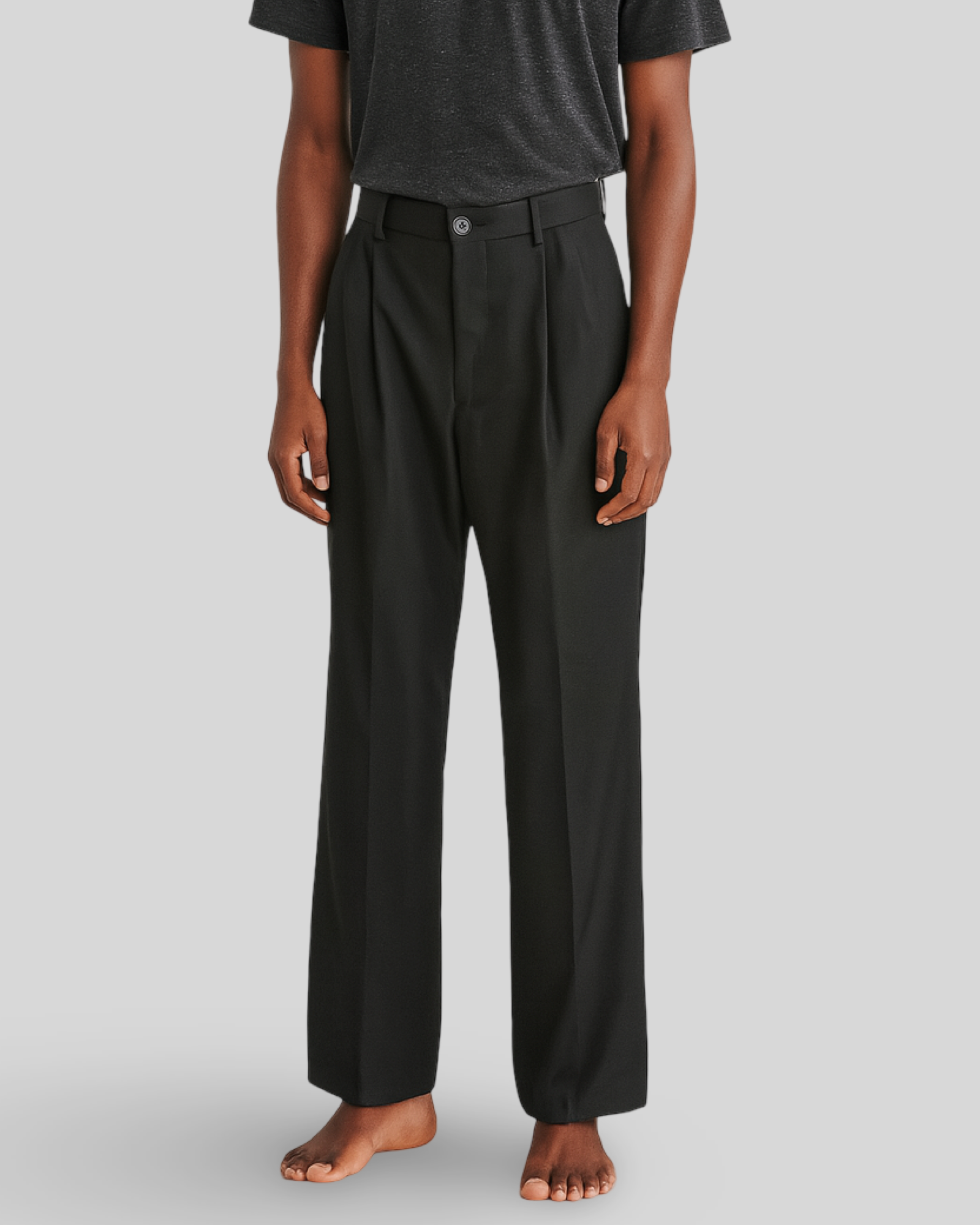 Elevate your wardrobe with these timeless pleated straight-leg trousers, designed for a clean, structured silhouette. Perfect for both casual and refined looks, these pants offer a comfortable yet tailored fit that flatters every build.