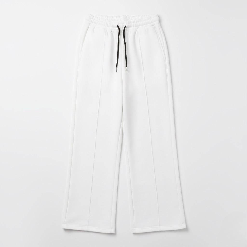 Minimal, elevated, and effortlessly clean — the PURE WHITE WIDE-LEG FRONT-SEAM JOGGER W25N brings a refined twist to everyday comfort.