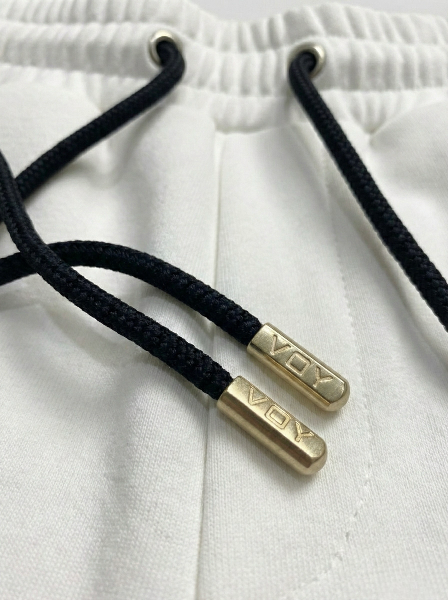 Crafted from a smooth, mid-weight double-knit fabric, it offers a soft-touch feel, excellent structure, and all-day comfort. The elastic waistband with contrast black drawstrings adds a functional and modern detail, enhancing the minimal aesthetic.