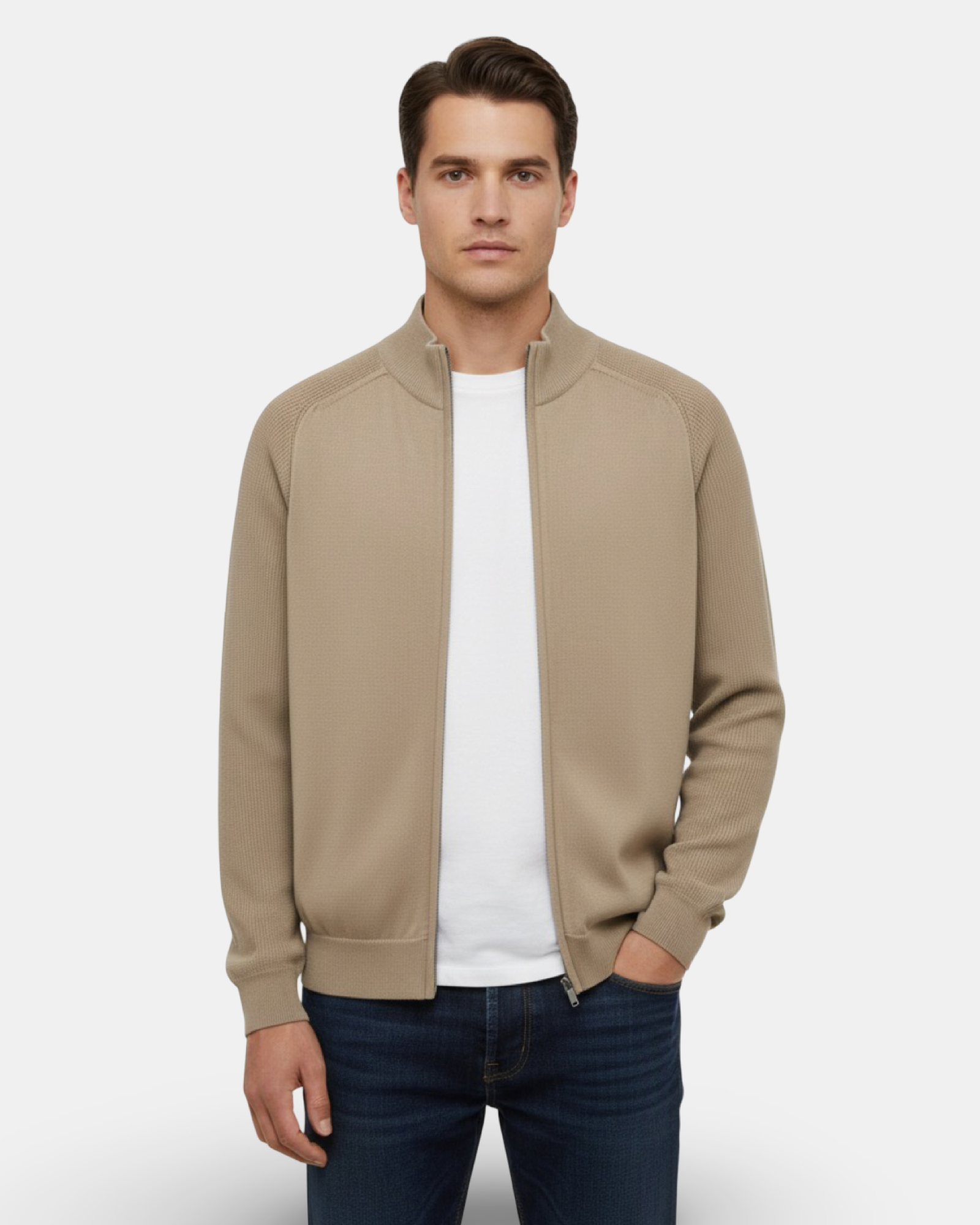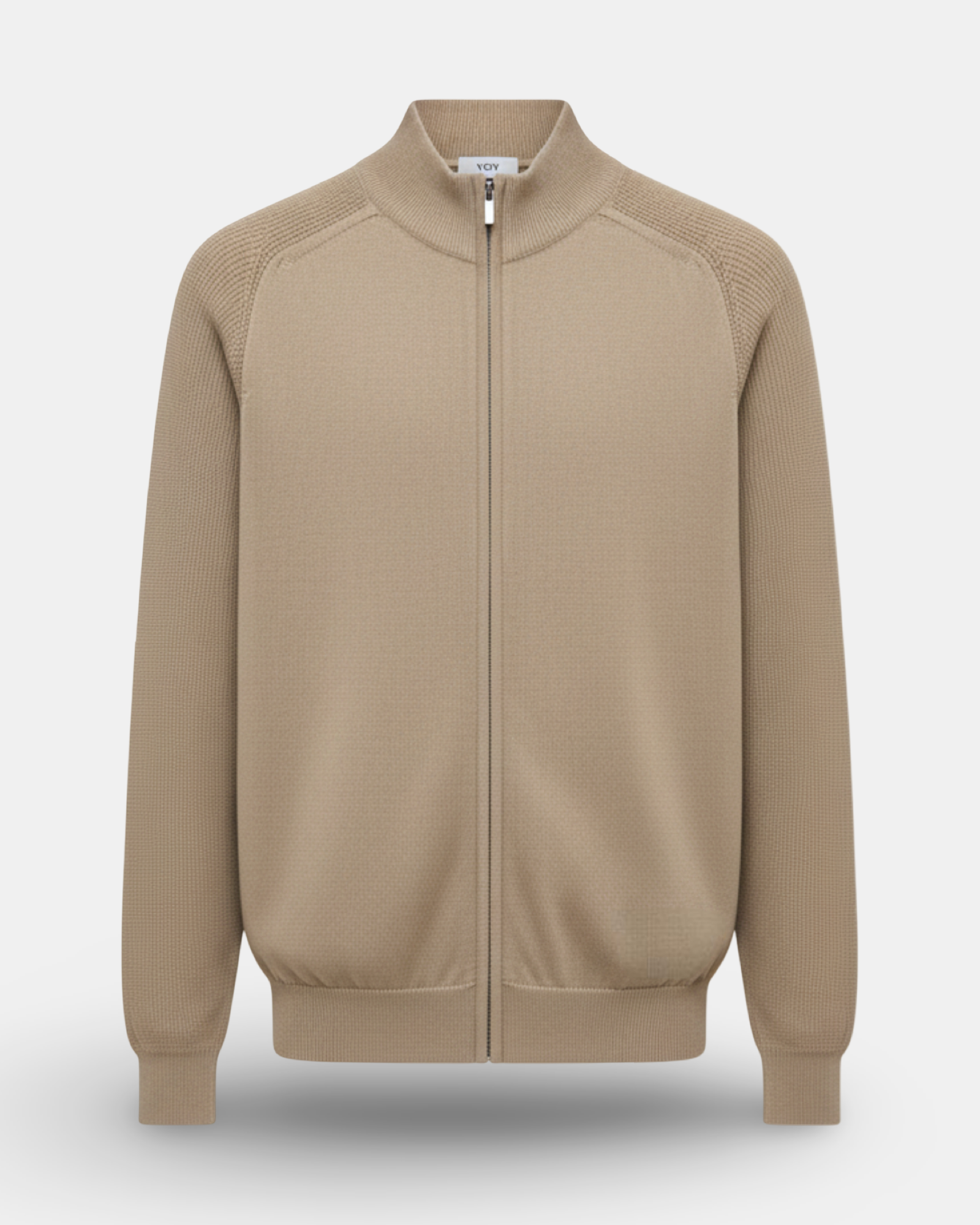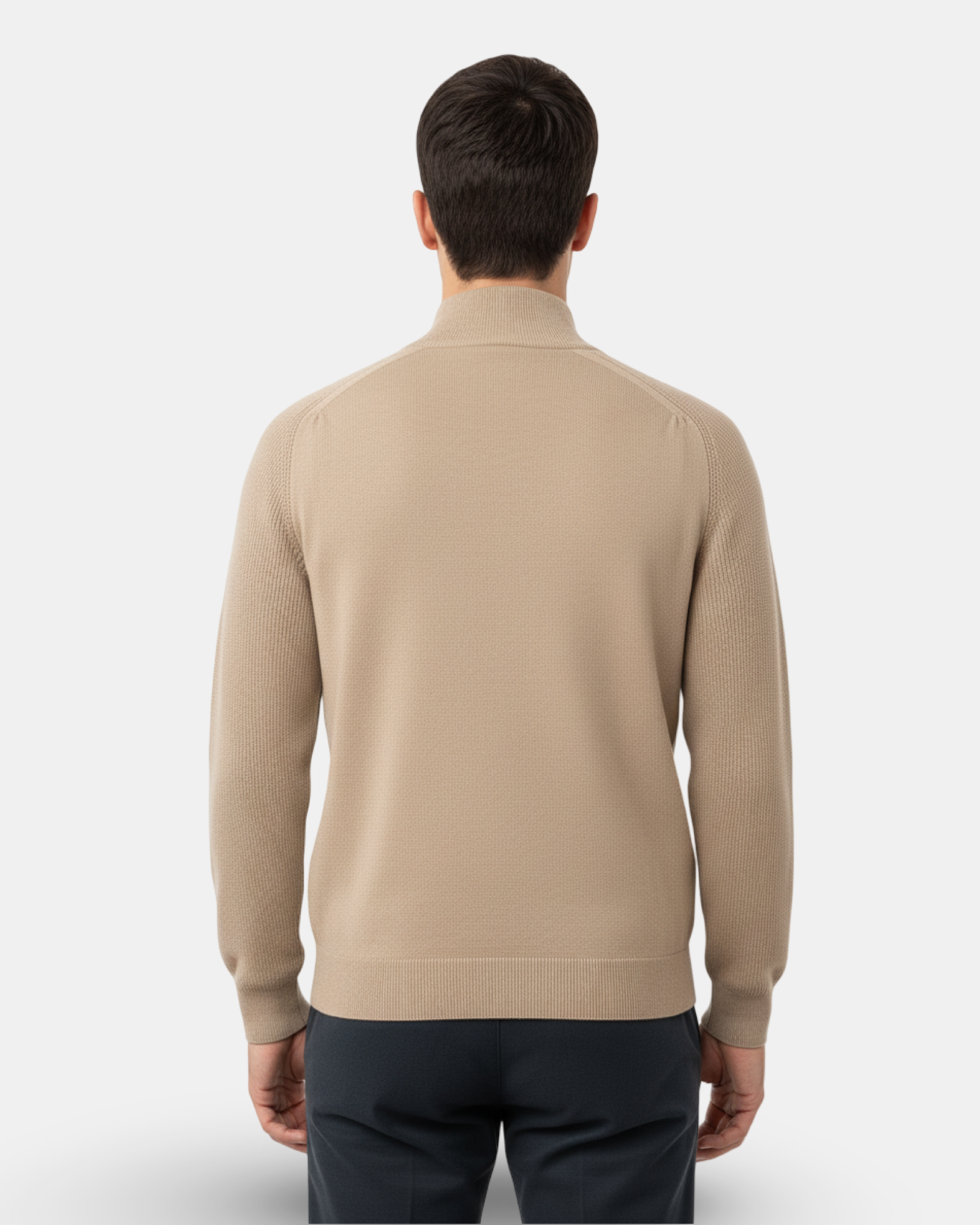 BEIGE TEXTURED ZIP-UP KNITWEAR W25N