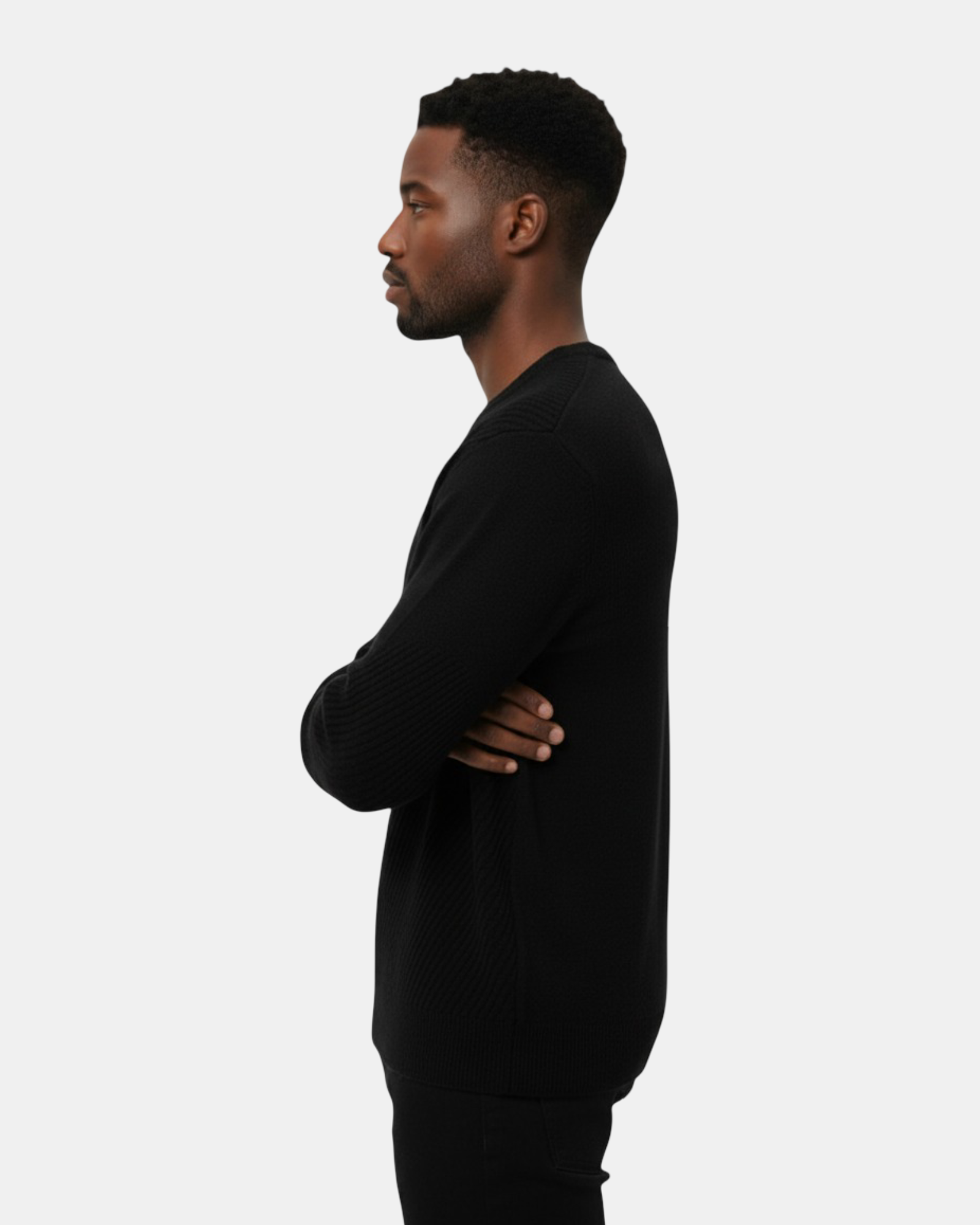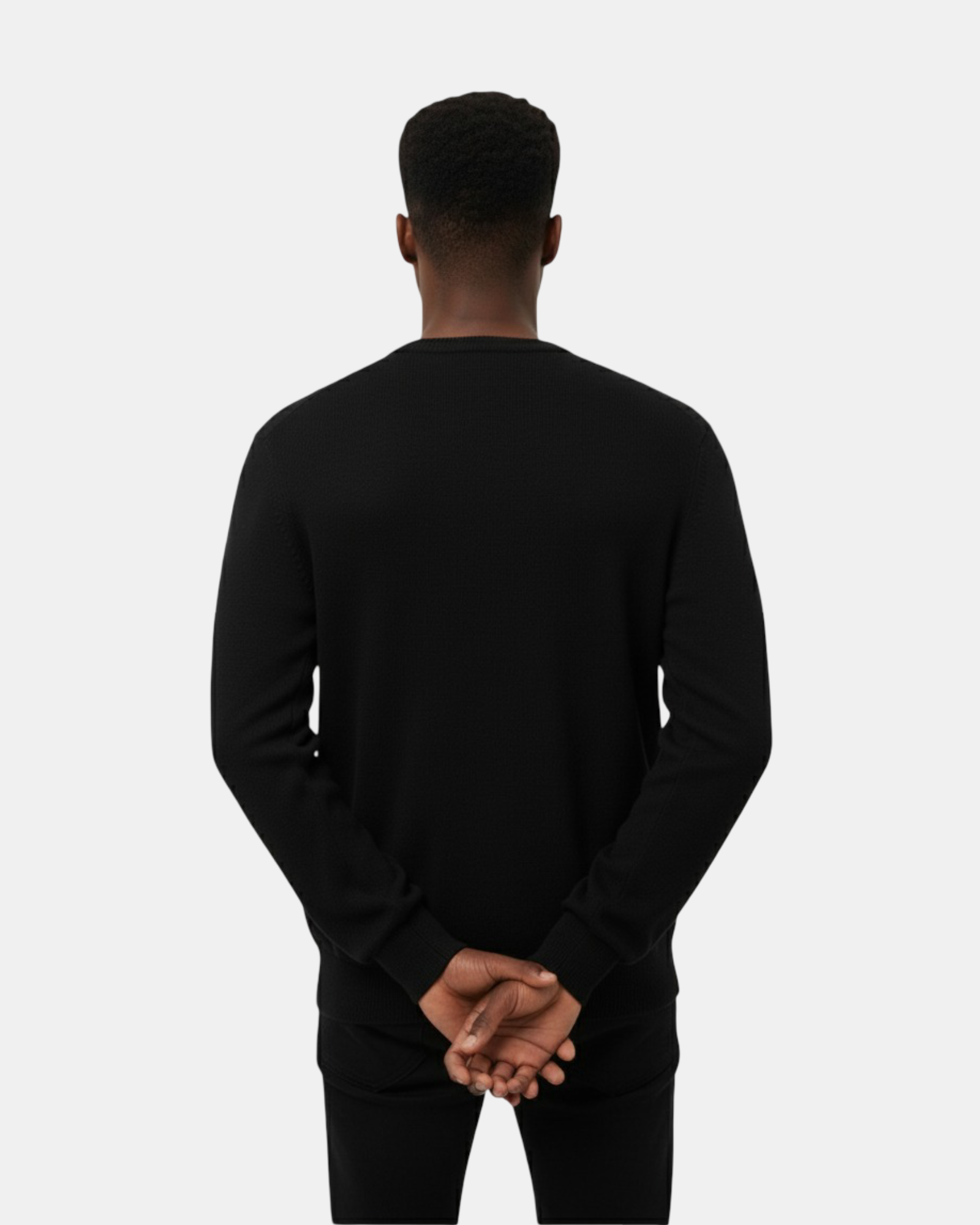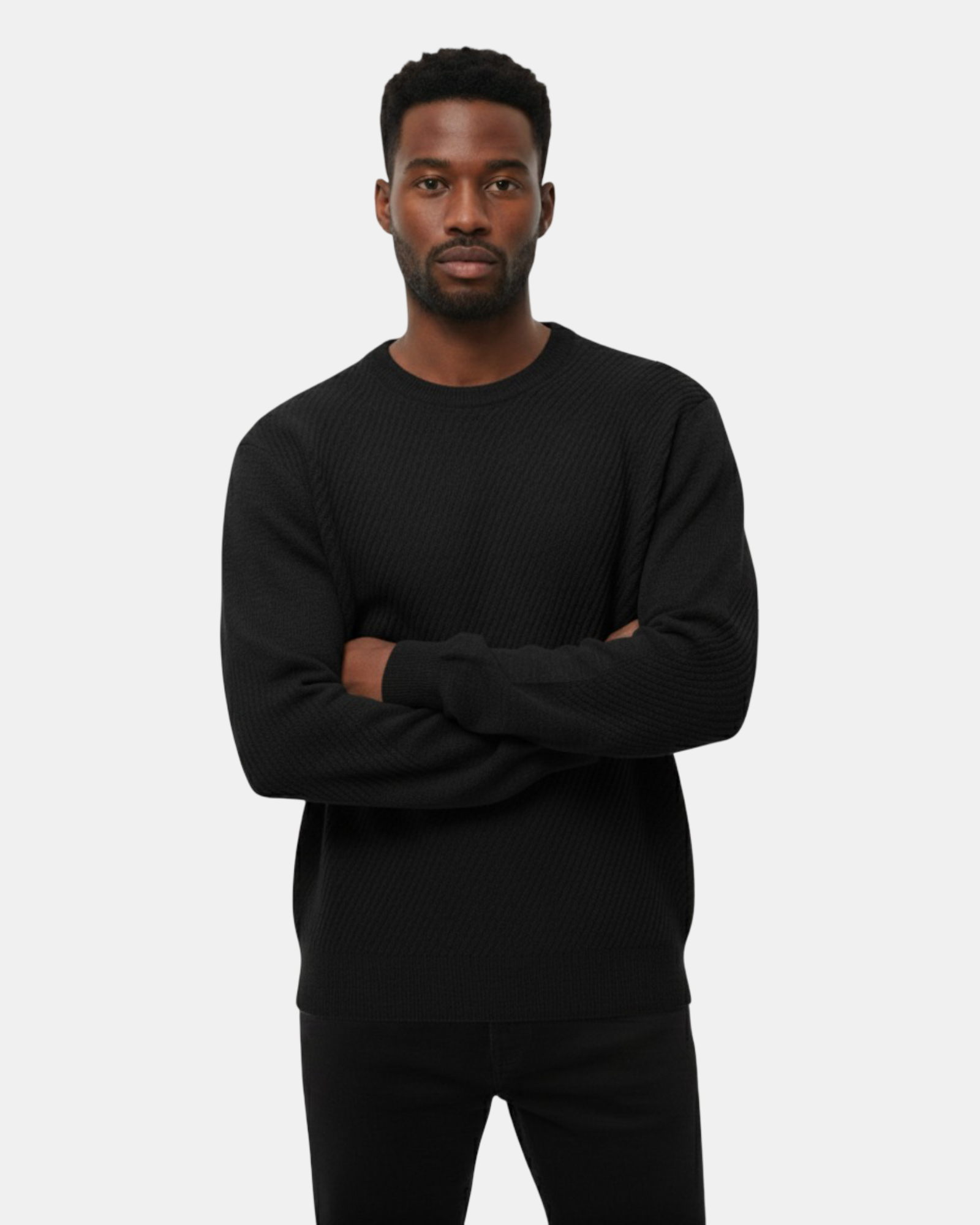 BLACK RIB-TEXTURE CREWNECK SWEATER W25N