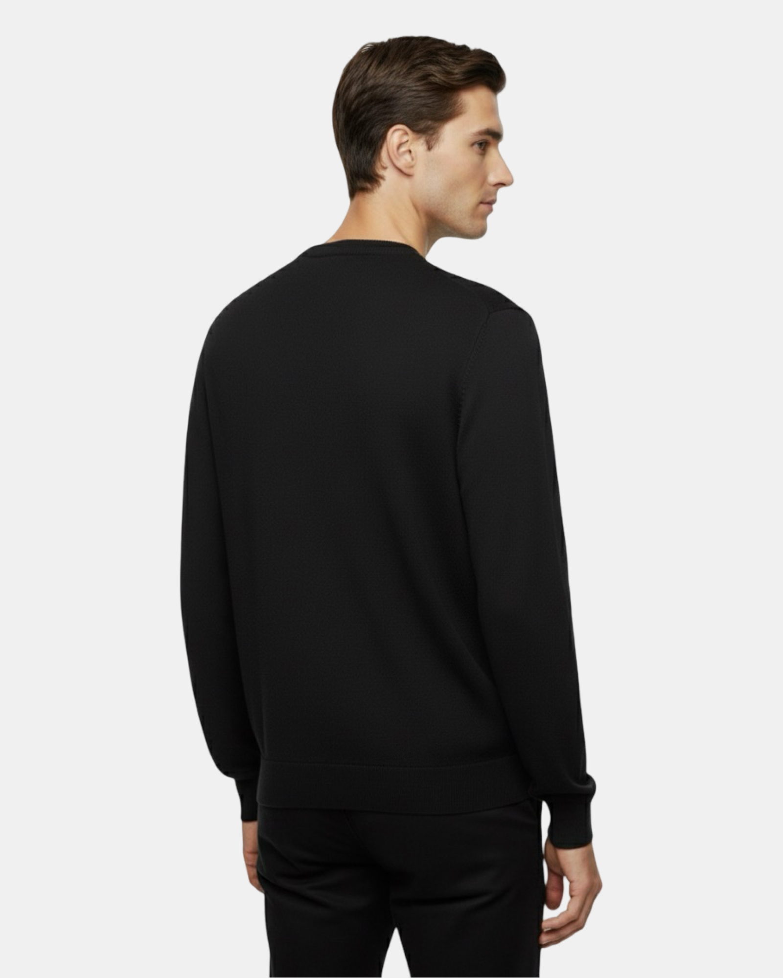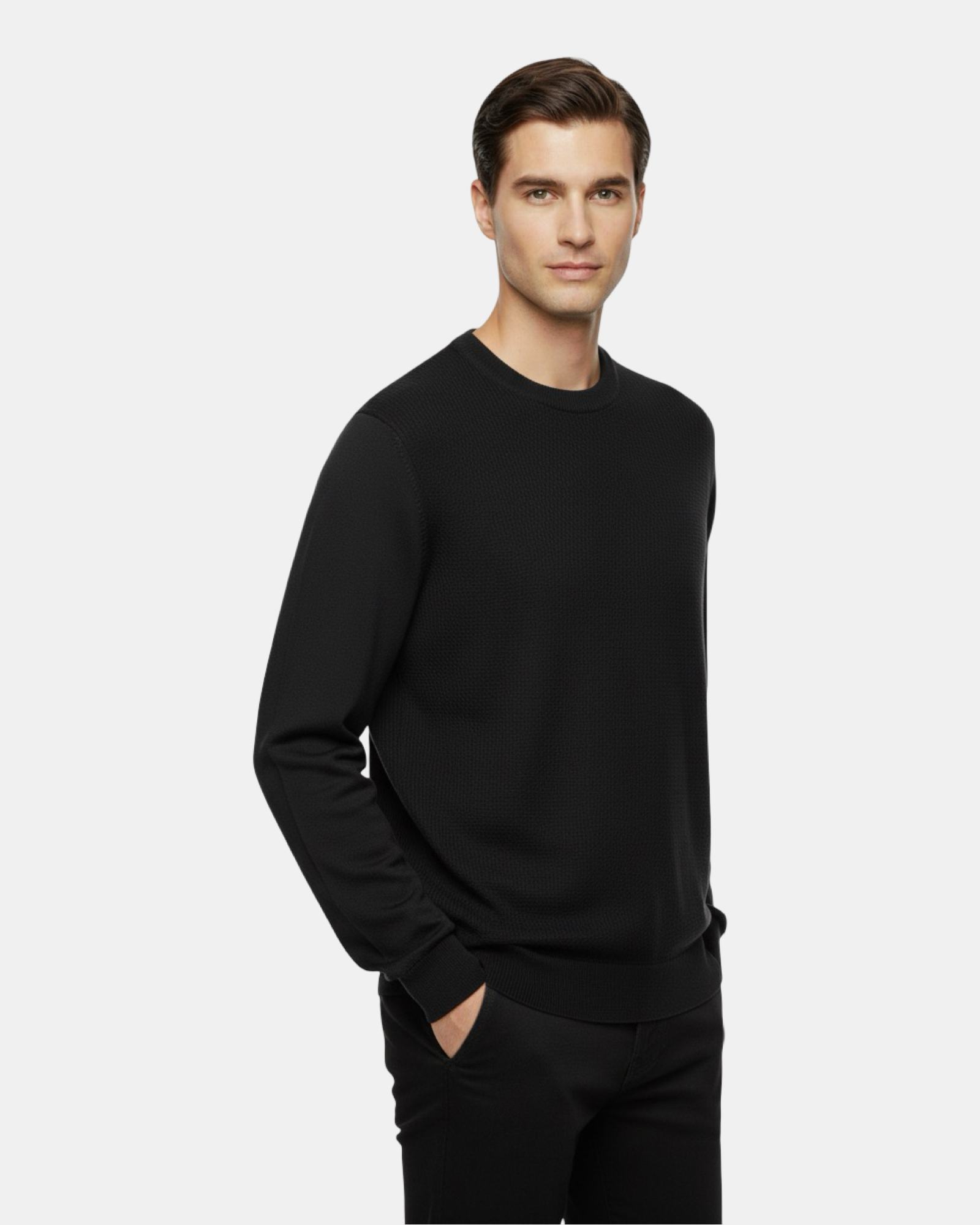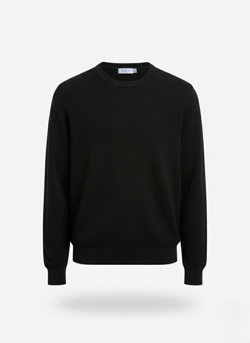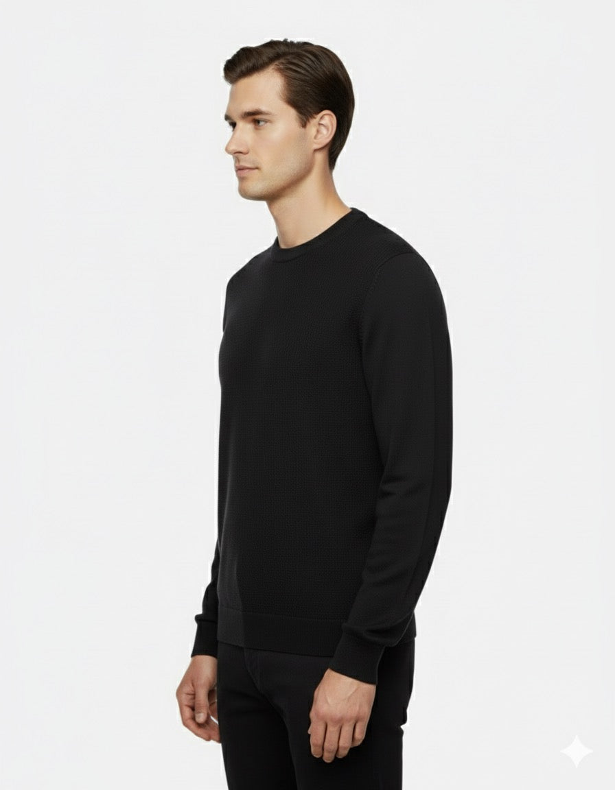 Finished in a modern black tone, this crewneck blends minimalism with subtle texture, making it an easy, versatile layer for everyday styling.