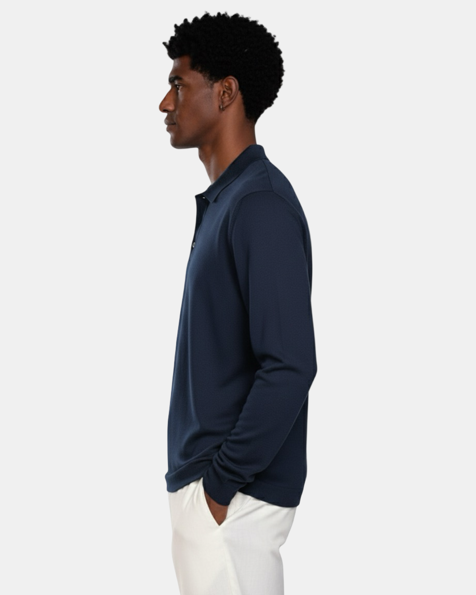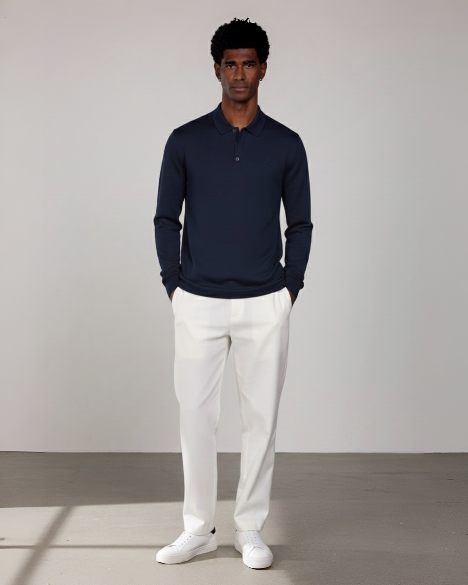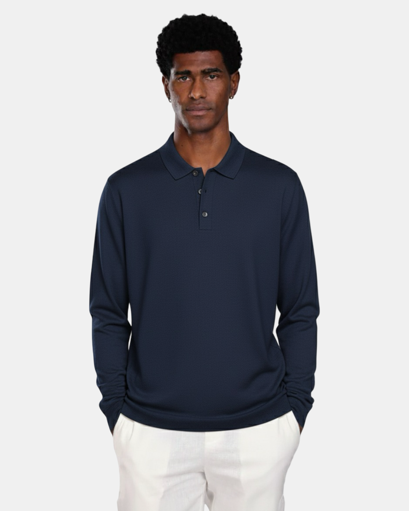 Elevate your everyday look with this refined long-sleeve polo crafted from a premium soft-knit fabric that delivers a smooth hand-feel and relaxed drape.