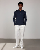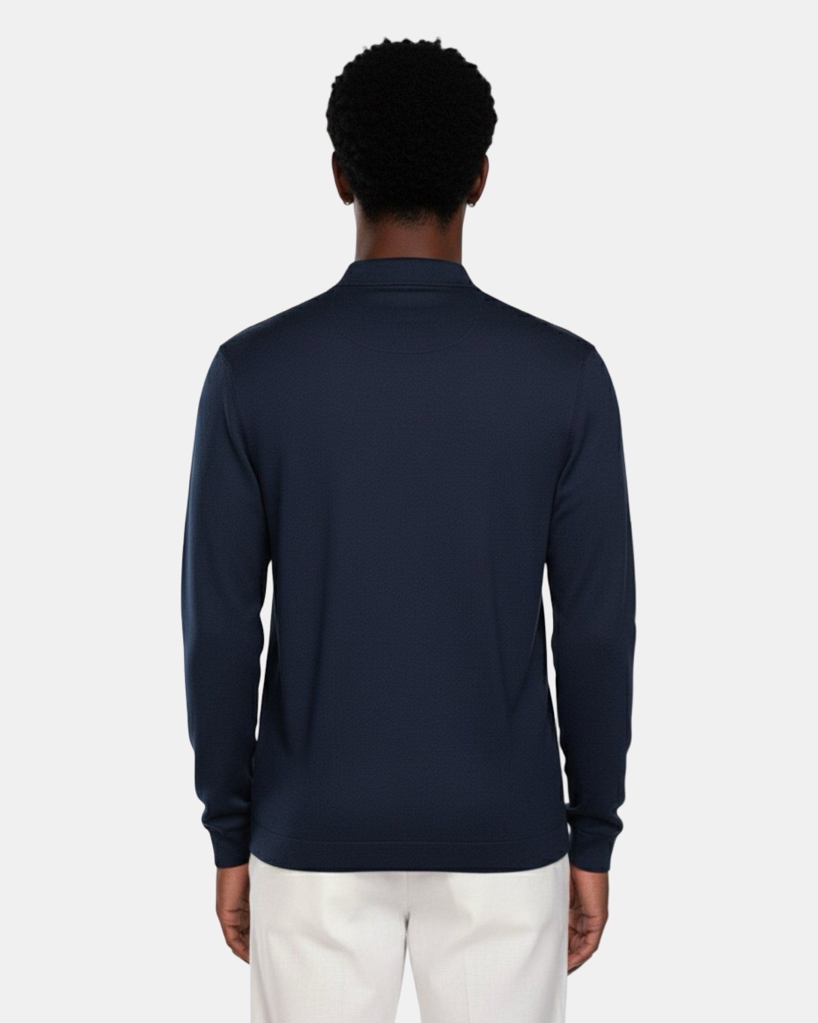 NAVY SOFT-KNIT LONG SLEEVE POLO W25N