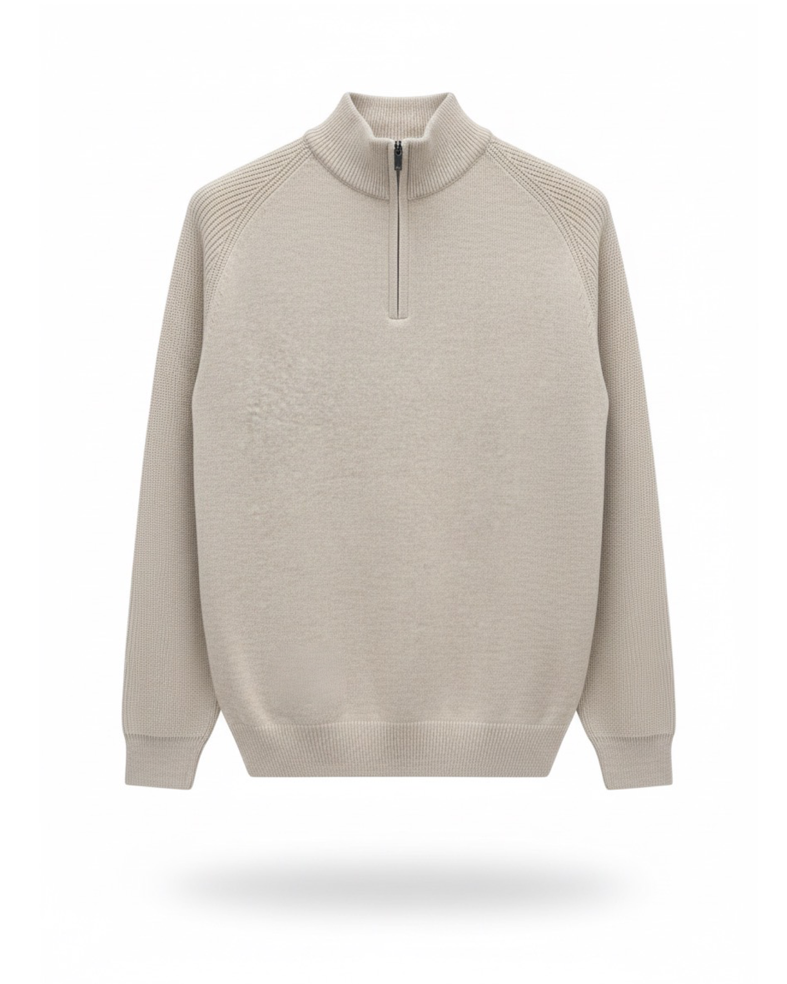 The beige Quarter-Zip Knit Pullover is a modern essential designed for refined comfort and versatile styling. Crafted from premium knit fabric, it combines a sleek quarter-zip neckline with a clean silhouette, making it perfect for layering or wearing on its own. The subtle silver hue adds a sophisticated touch, ideal for both casual and smart-casual looks.