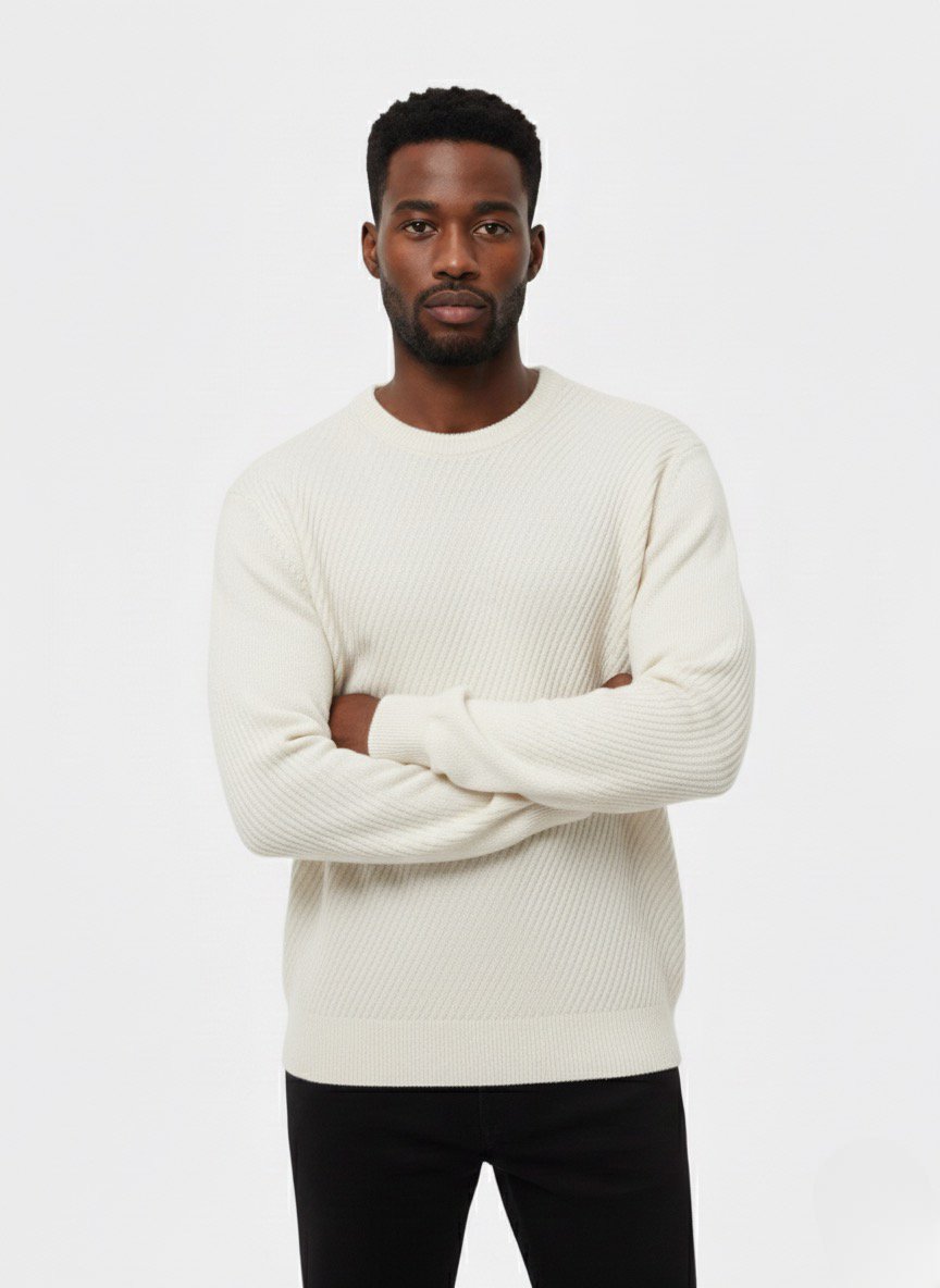 WHITE RIB-TEXTURE CREWNECK SWEATER W25N