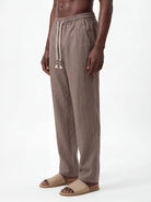 TAUPE STRAIGHT-LEG PURE LINEN DRAWSTRING PANTS S26N