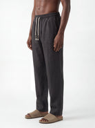 CHARCOAL STRAIGHT-LEG PURE LINEN DRAWSTRING PANTS S26N