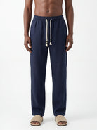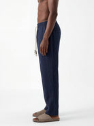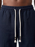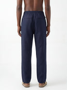 DEEP NAVY STRAIGHT-LEG PURE LINEN DRAWSTRING PANTS S26N