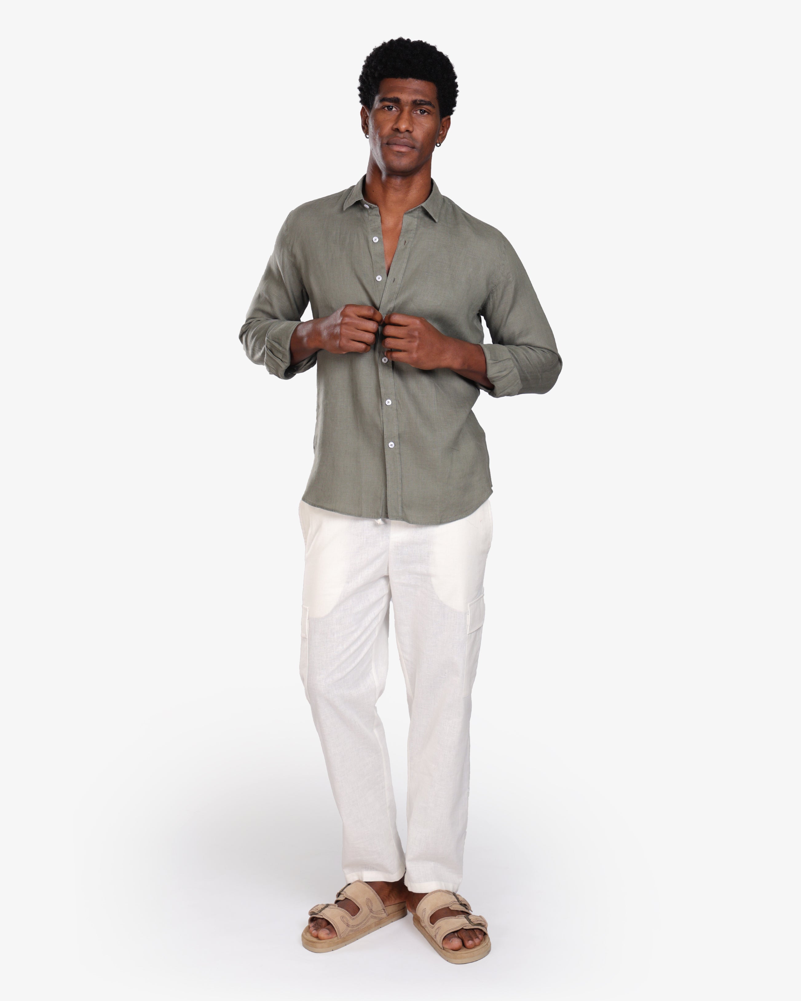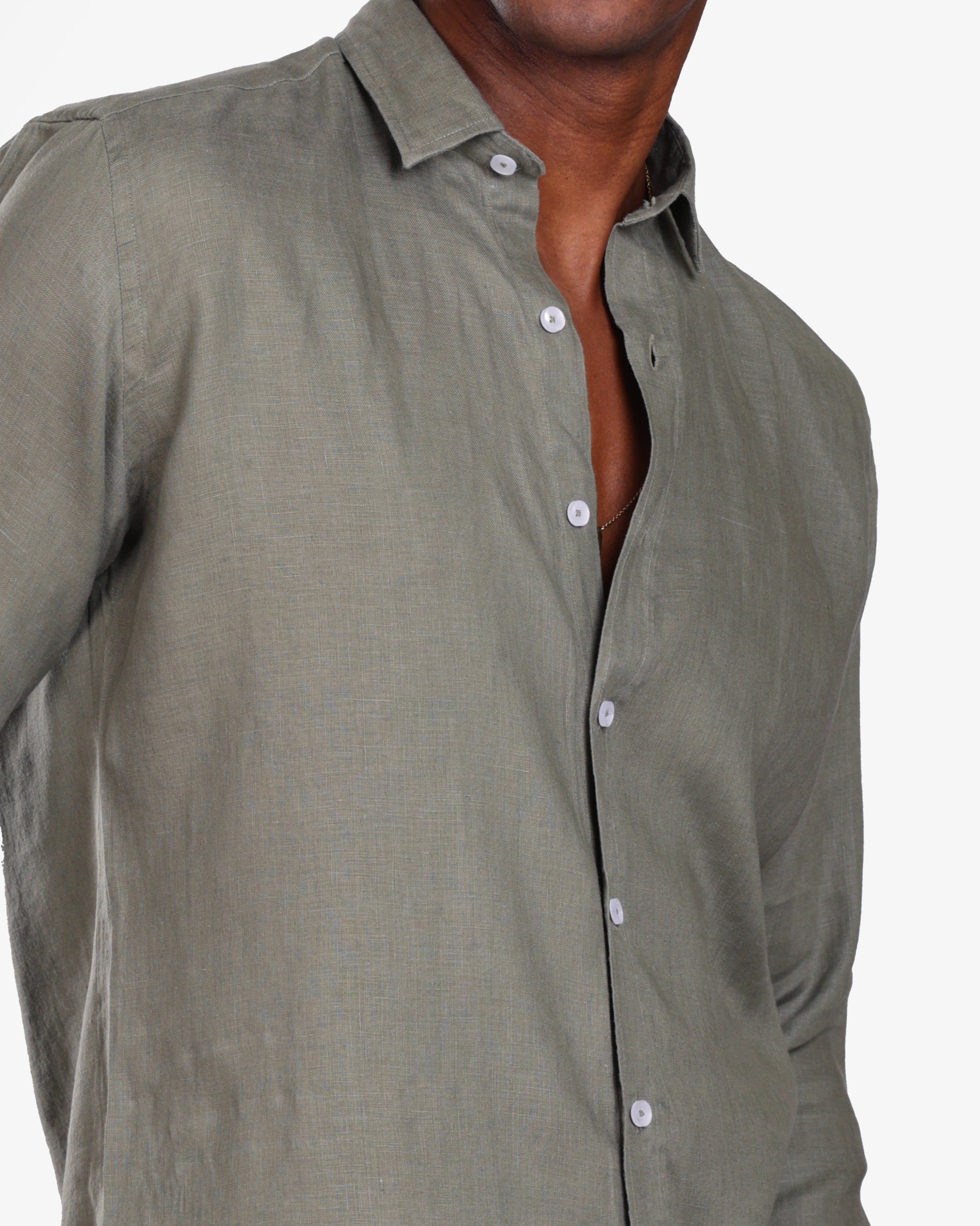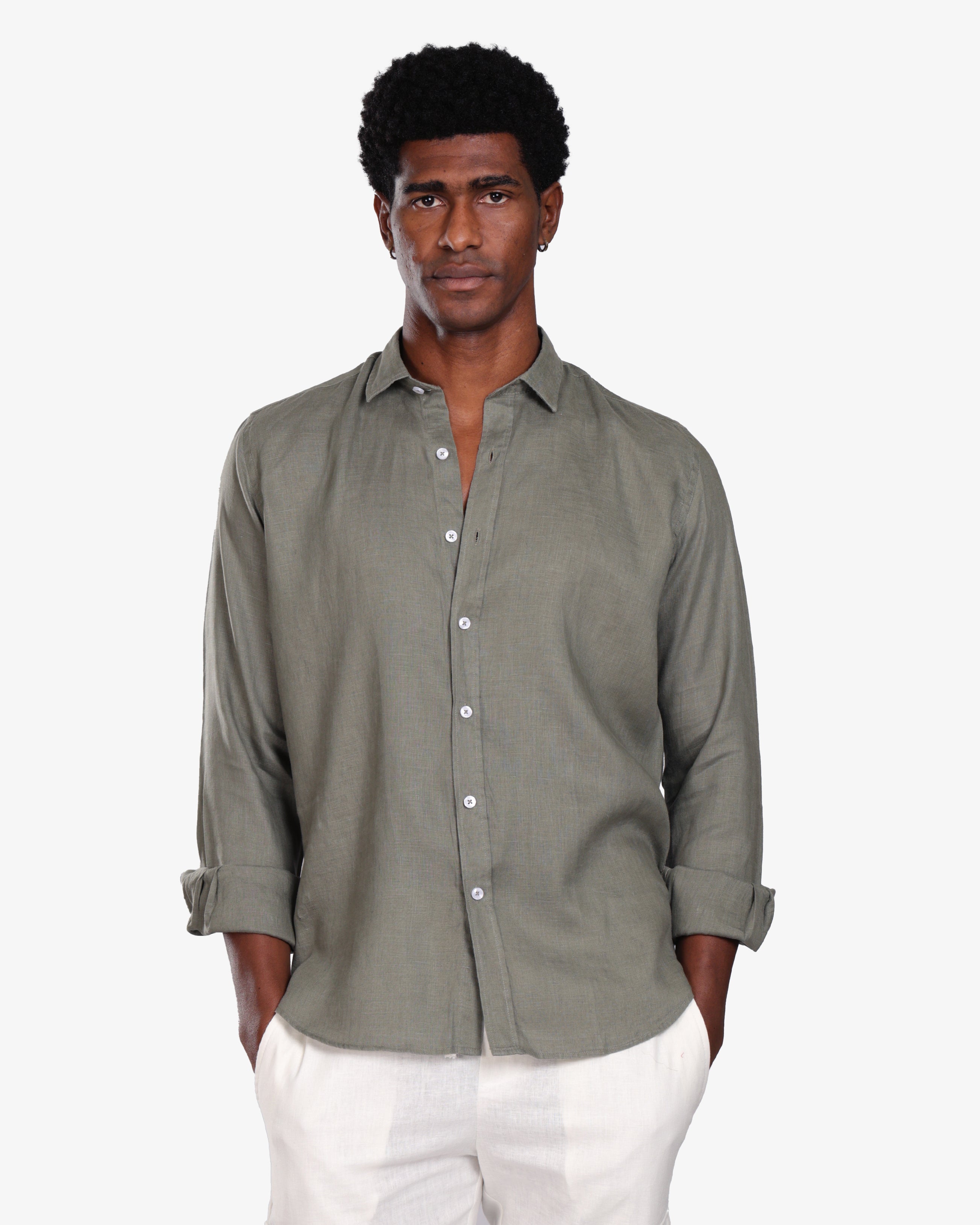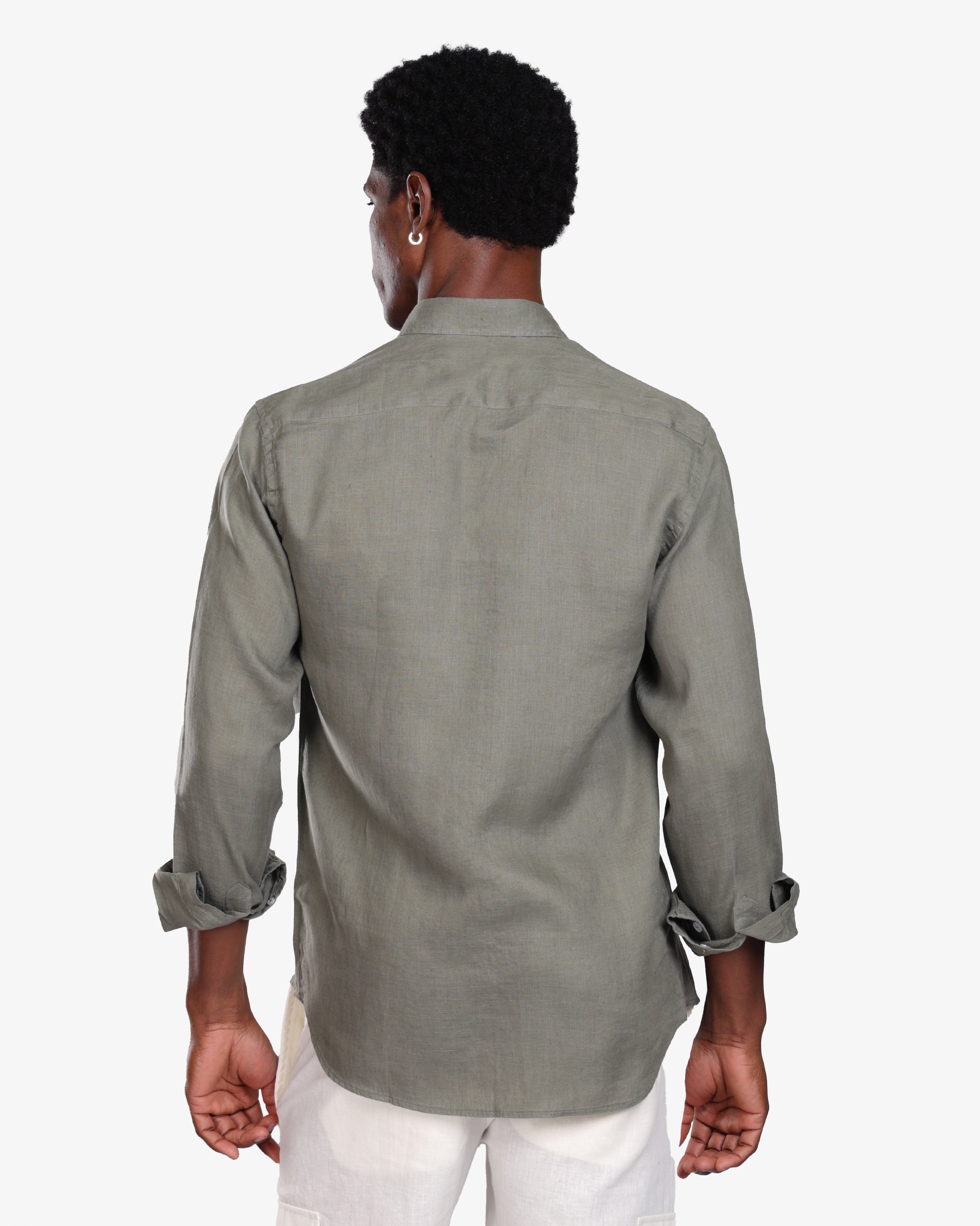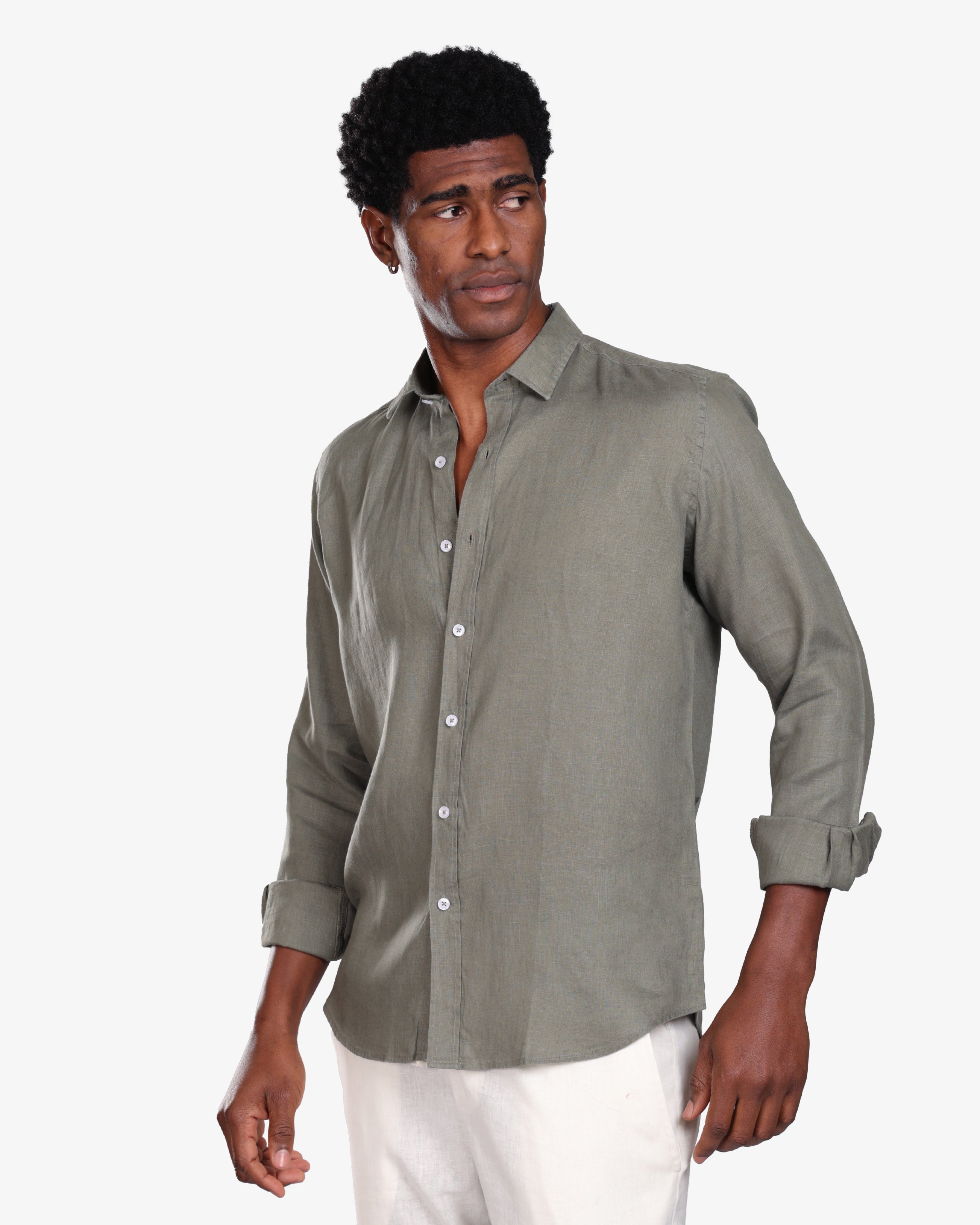 Elevate your casual wardrobe with this effortlessly stylish men’s long sleeve shirt. Crafted from a breathable linen blend, it features a refined saga green color with a soft, slightly textured finish. The shirt is tailored with a relaxed yet modern fit, making it perfect for both smart-casual and laid-back settings.
