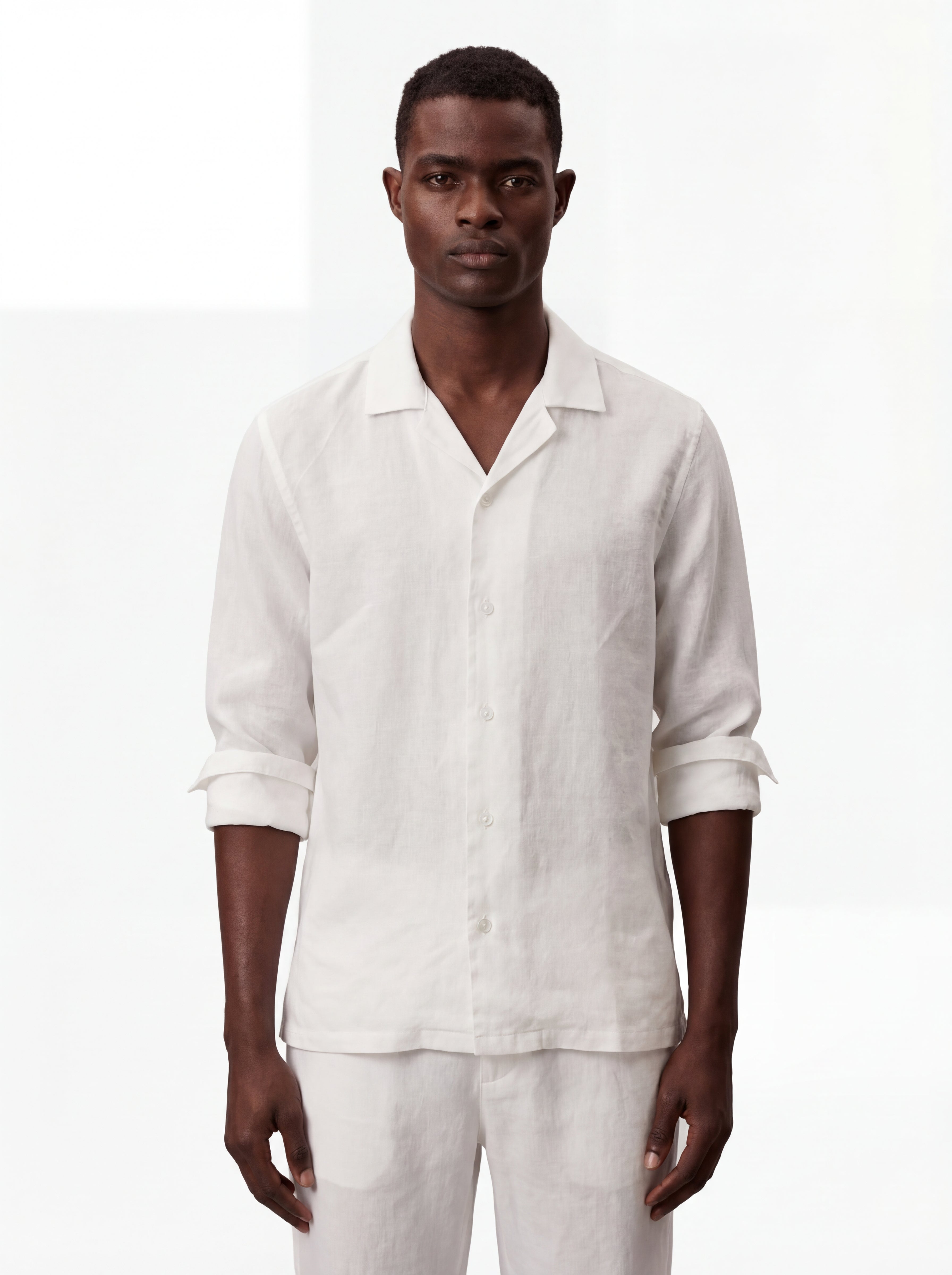 The off-white tone delivers a refined neutral aesthetic, making it one of the most versatile pieces in a summer wardrobe. The relaxed fit allows natural movement and comfort, while the resort collar introduces a laid-back Mediterranean character that elevates the shirt beyond a basic staple.