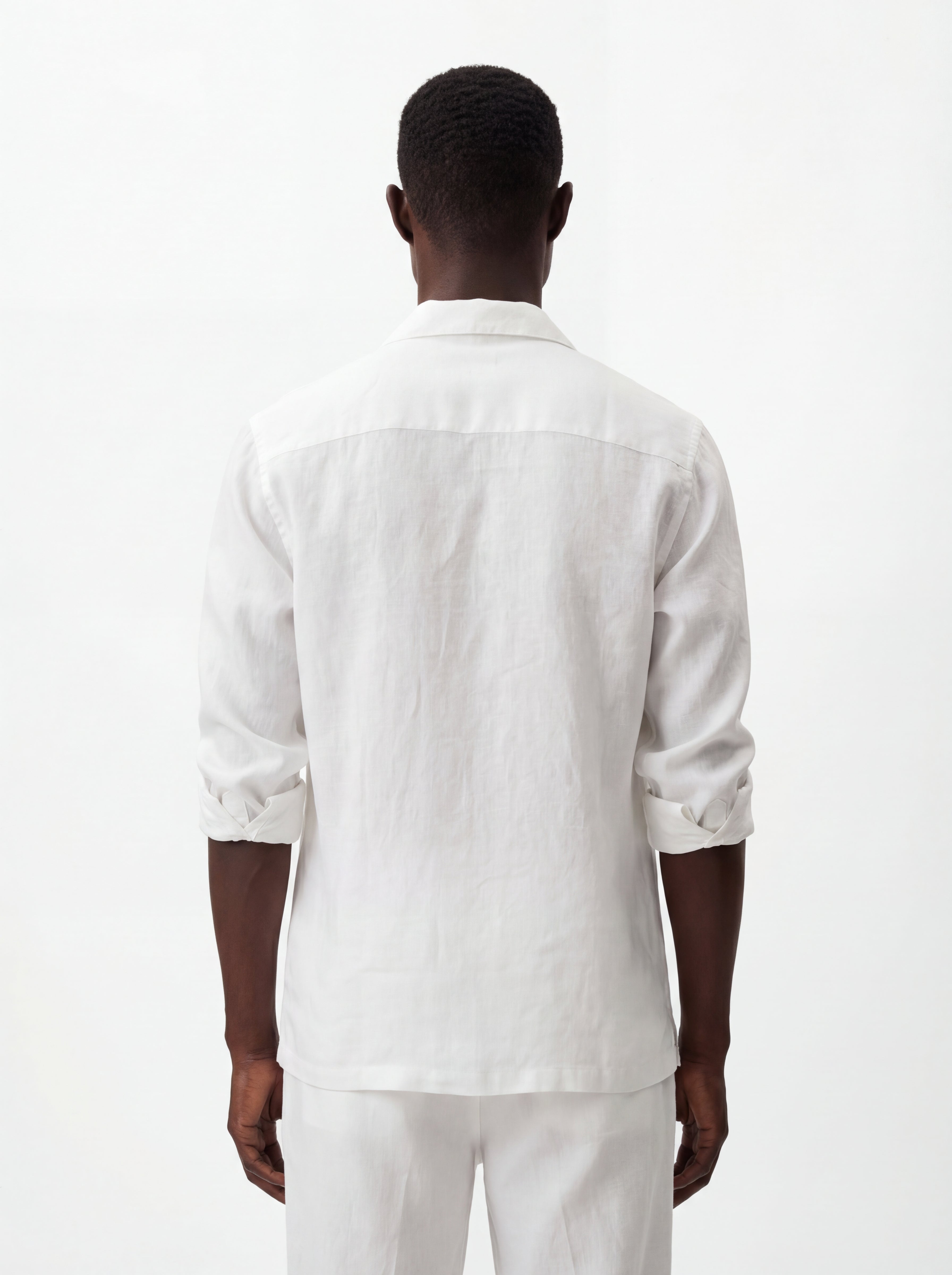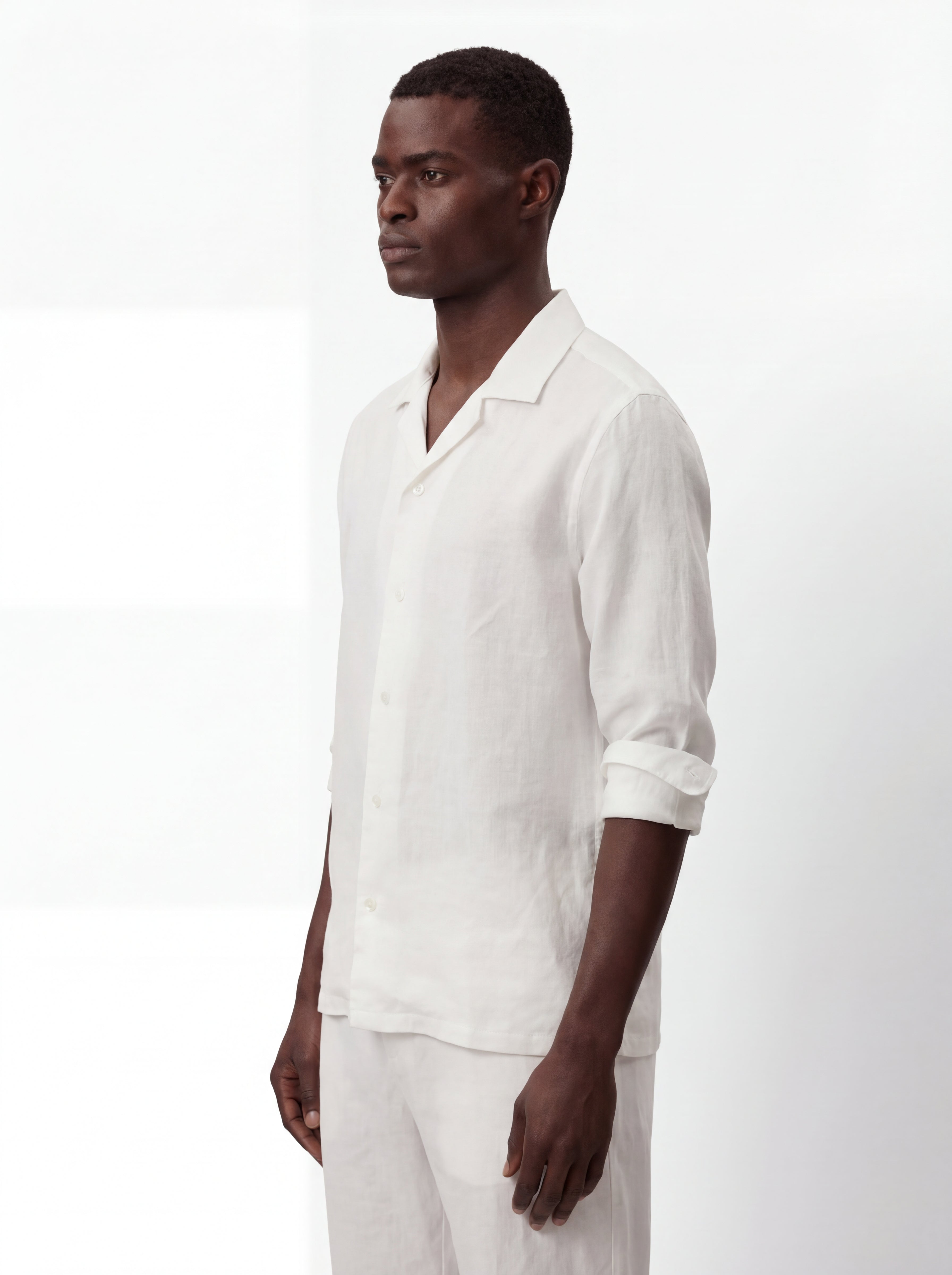 WHITE RELAXED LINEN RESORT SHIRT S26N