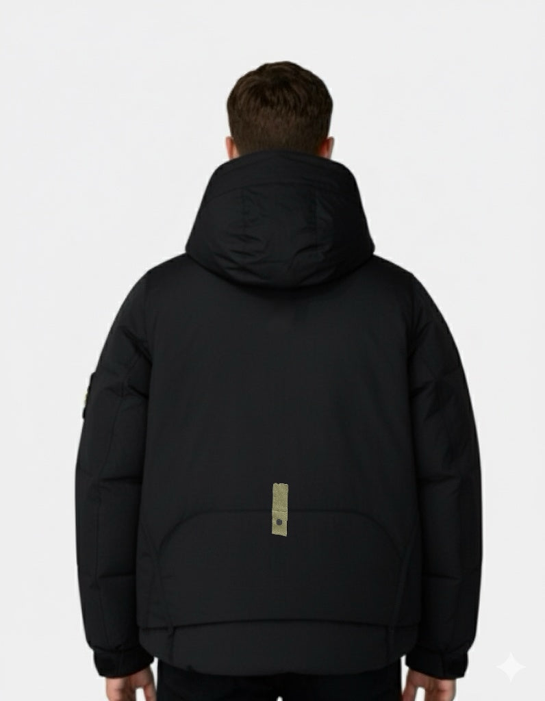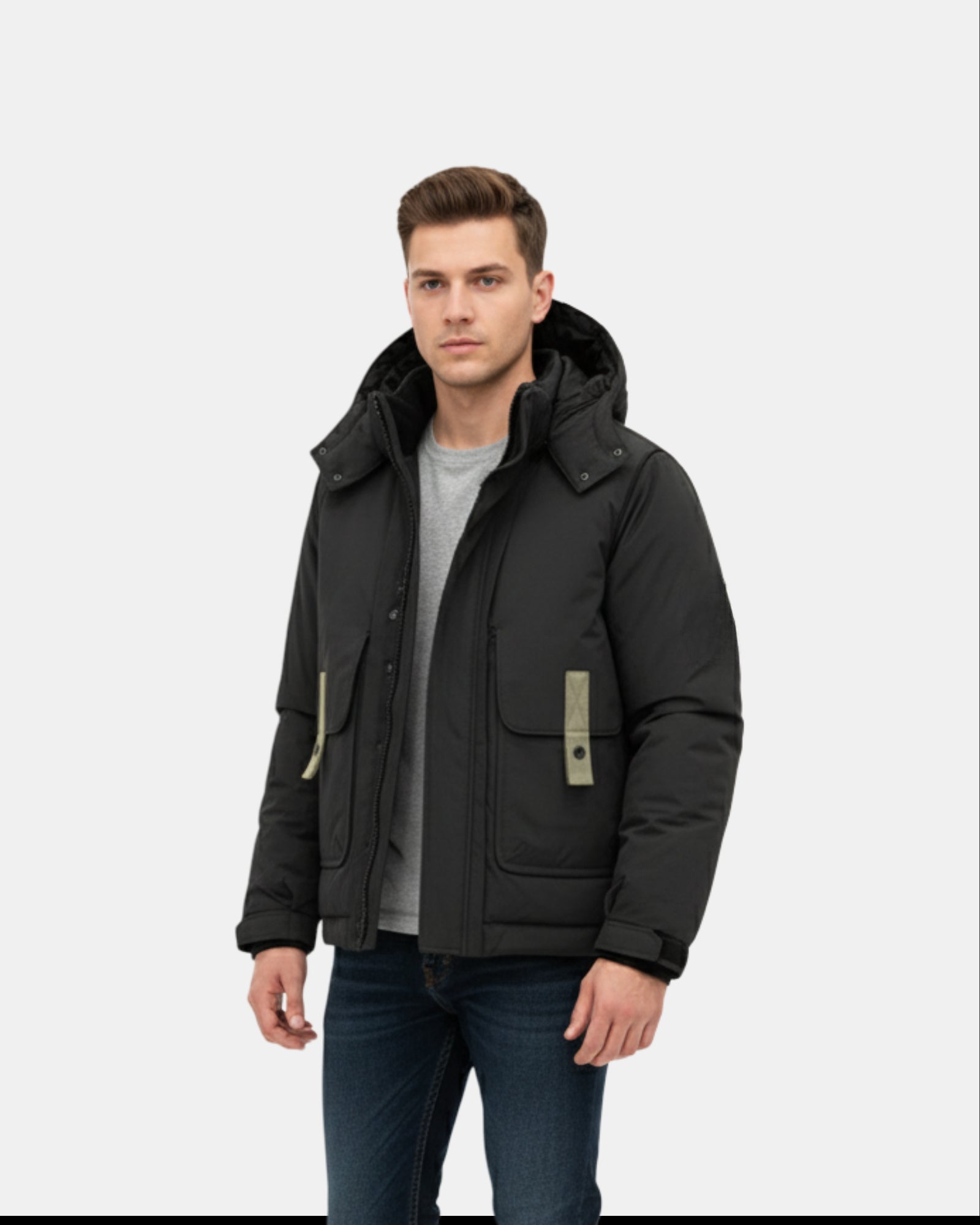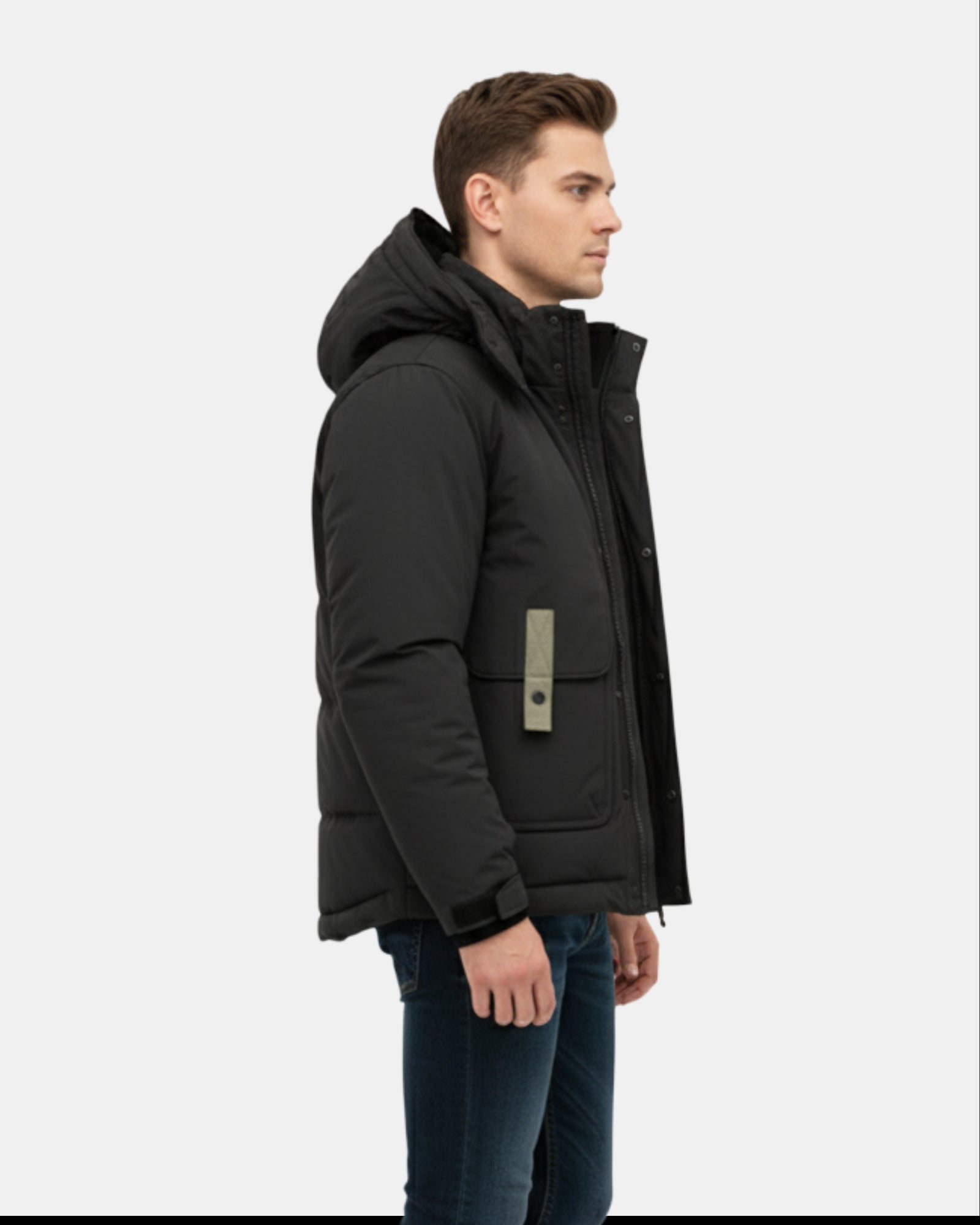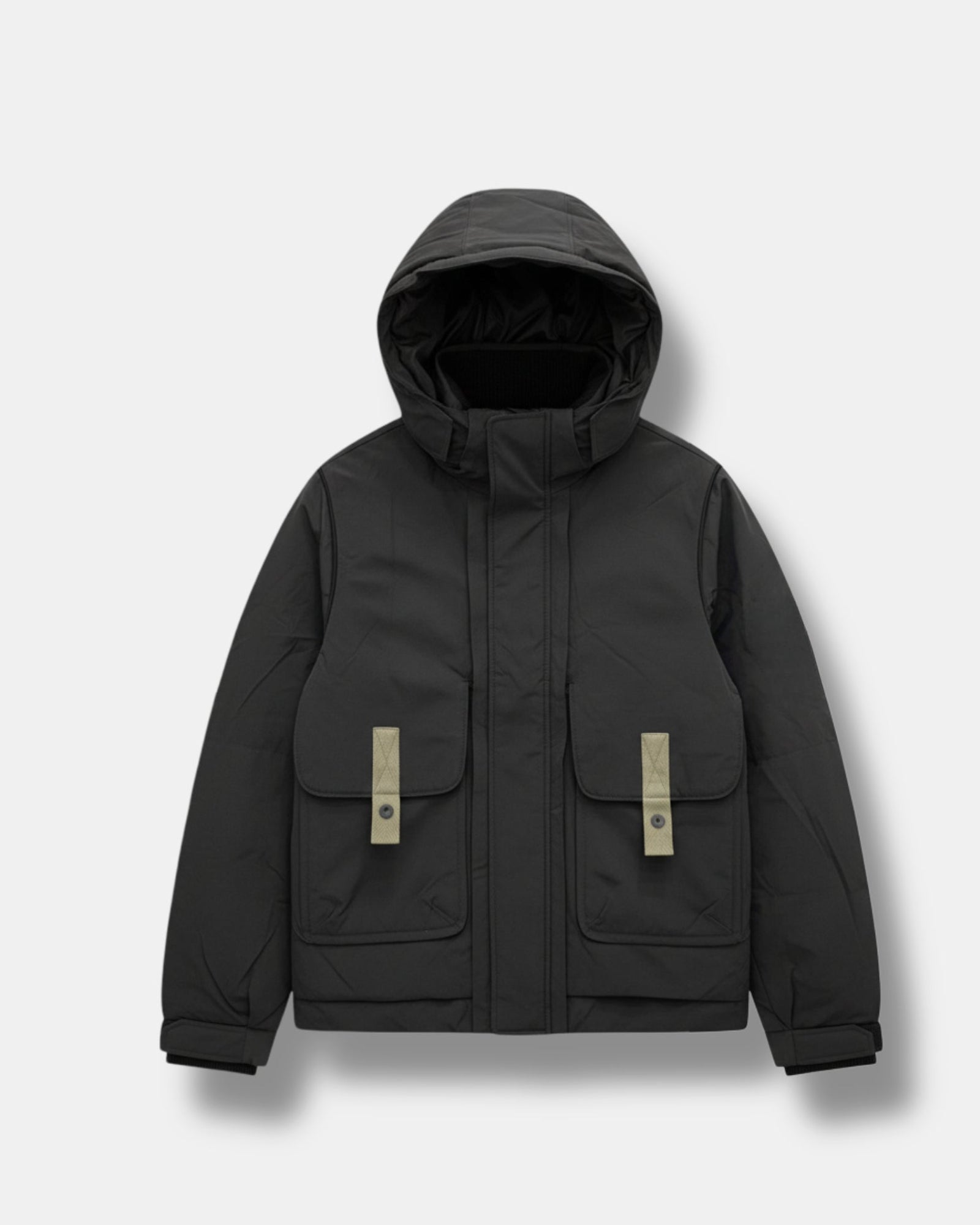 The black Tech Pocket Down Hooded Jacket W25N merges modern utility with refined minimalism. Designed for cold urban environments, it features a soft ivory tone and structured silhouette enhanced by functional details. Crafted from a durable, water-repellent shell and filled with premium down insulation, it ensures superior warmth without bulk. Contrast olive accents and a sleek arm patch add a signature technical edge — a perfect balance between performance and style.