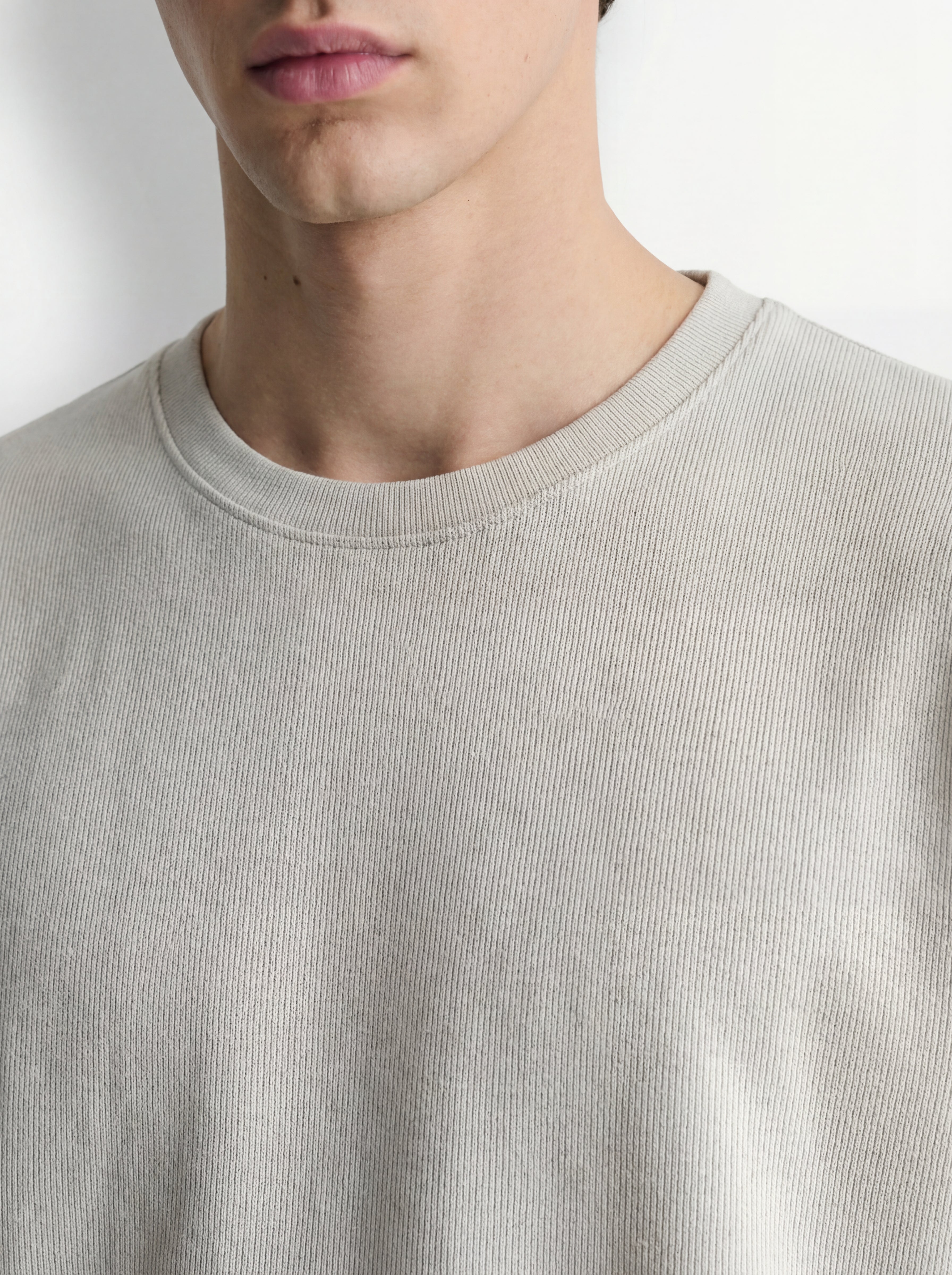 Clean crew neck collar with structured rib finish