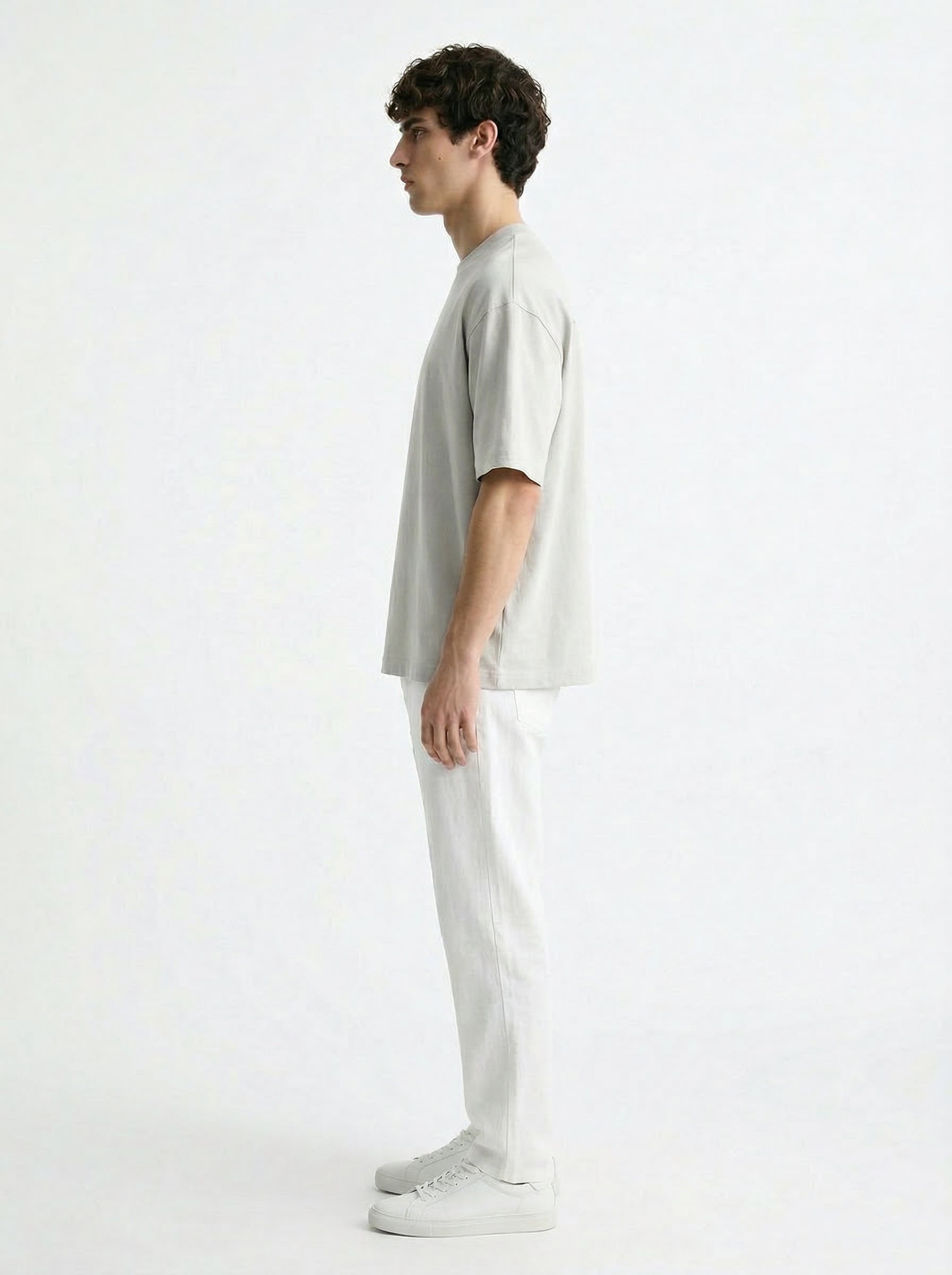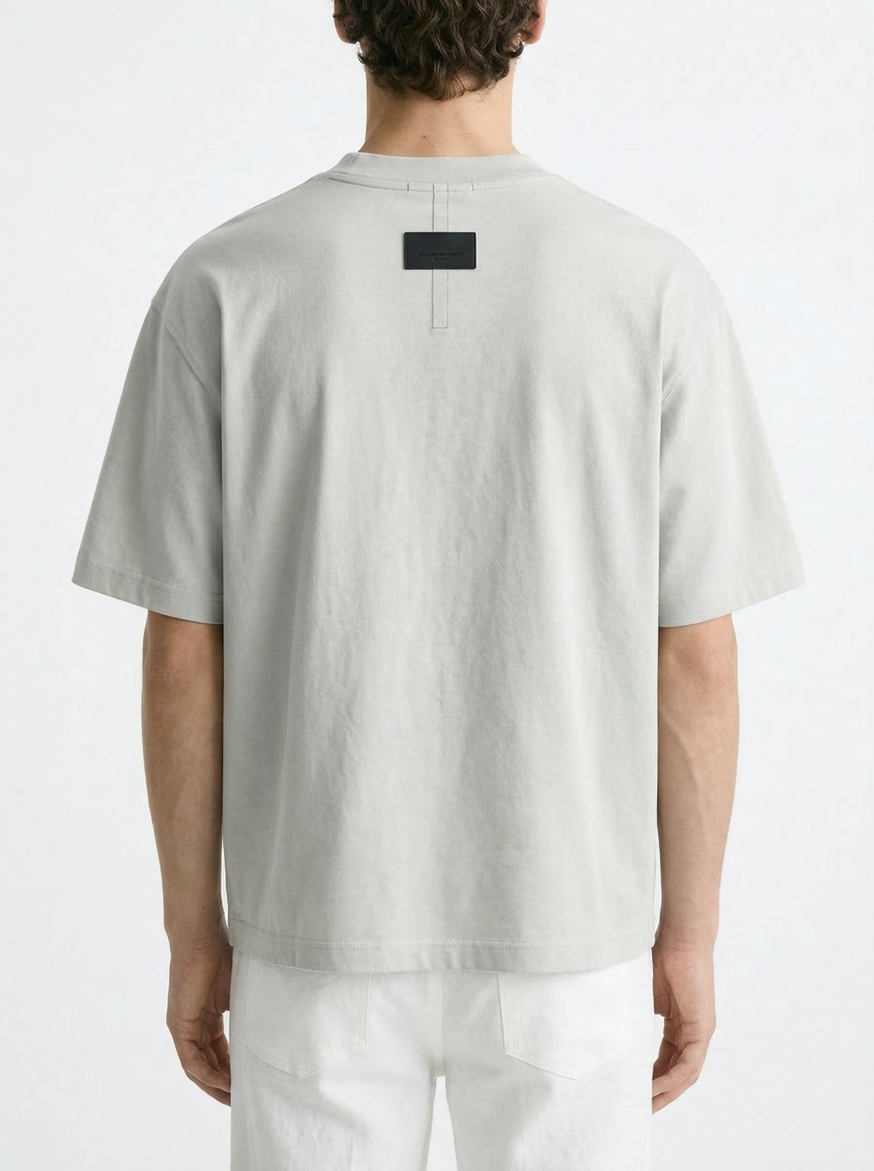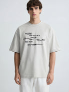 The ASH STATIC TYPO T-SHIRT is crafted from premium cotton fabric in a soft light ash grey tone, delivering a smooth surface with a subtle structured drape. The oversized silhouette creates a relaxed, contemporary fit while maintaining a sharp and elevated look.