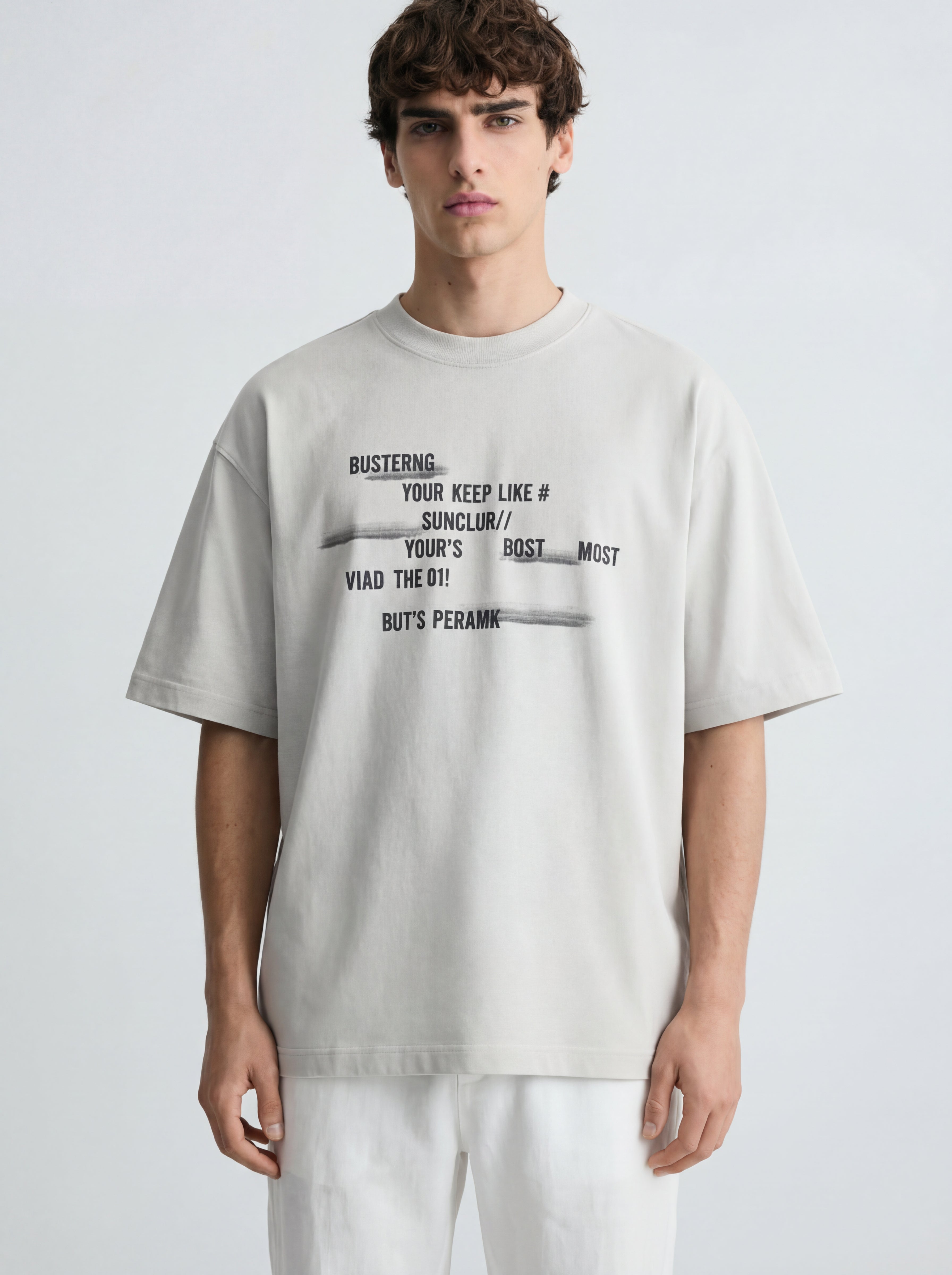 A modern oversized statement piece built around minimal distortion typography and clean visual balance.