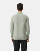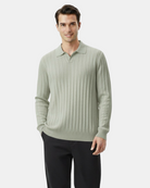 PALE SAGE VERTICAL-KNIT POLO SWEATER W25N