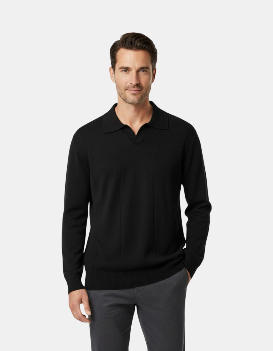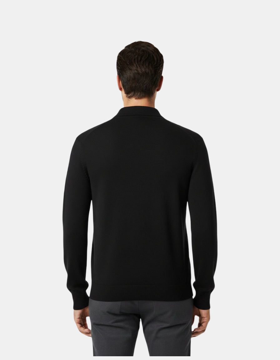 The black Knitted Polo Sweater W25N combines timeless sophistication with effortless comfort. Crafted from a premium cotton-blend knit, it features a subtle textured pattern and a refined open-collar design that bridges the line between casual and smart. The ivory tone adds an elegant, minimal aesthetic — perfect for layering or wearing on its own across all seasons.