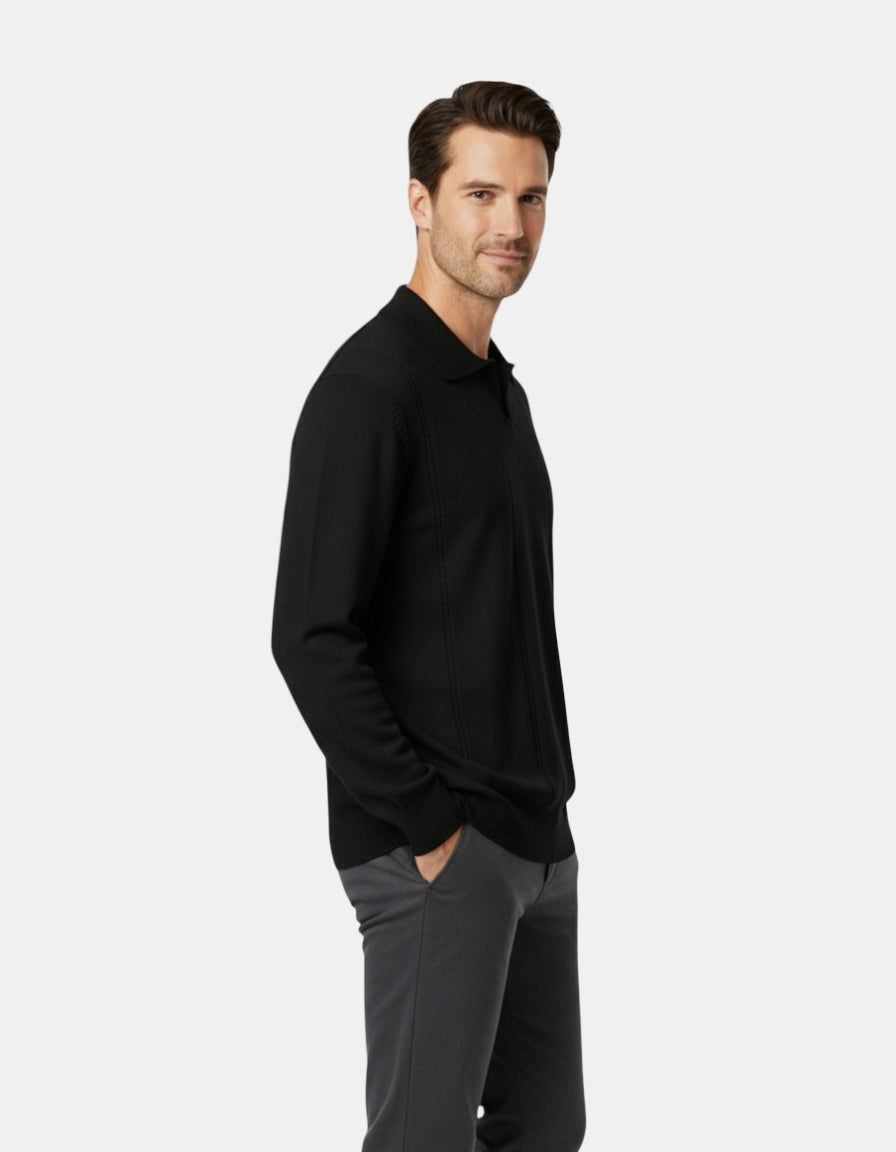 BLACK TEXTURED KNIT POLO W25N