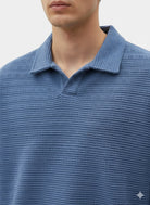 DESATURATED BLUE TEXTURED OPEN-COLLAR KNIT W25N