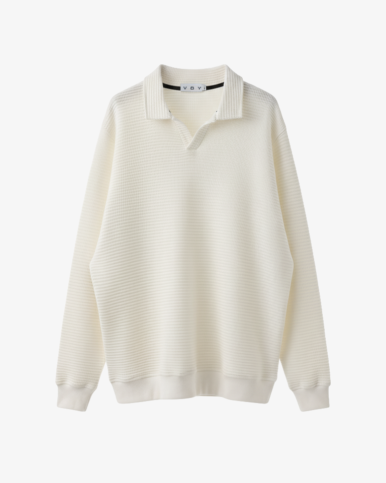 WHITE OVERSIZED TEXTURED POLO SWEATSHIRT W25N