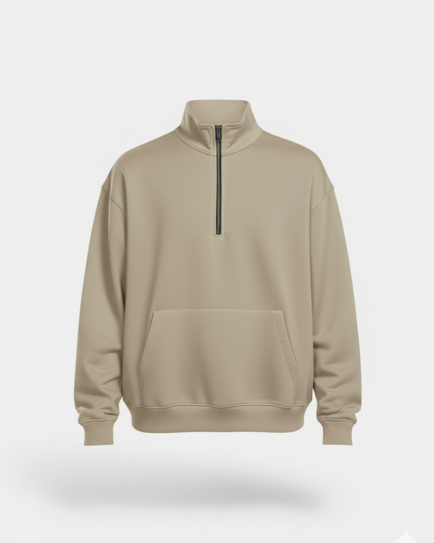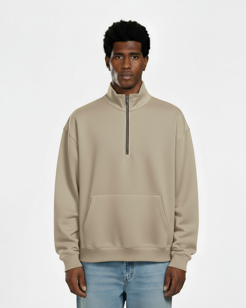 Stay effortlessly stylish and comfortable with this men’s quarter-zip sweatshirt in a beige tone. Designed with a relaxed fit, it combines minimal aesthetics with functional details, making it ideal for both casual outings and laid-back layering. The soft fabric ensures all-day comfort, while the clean finish gives it a modern, versatile edge.