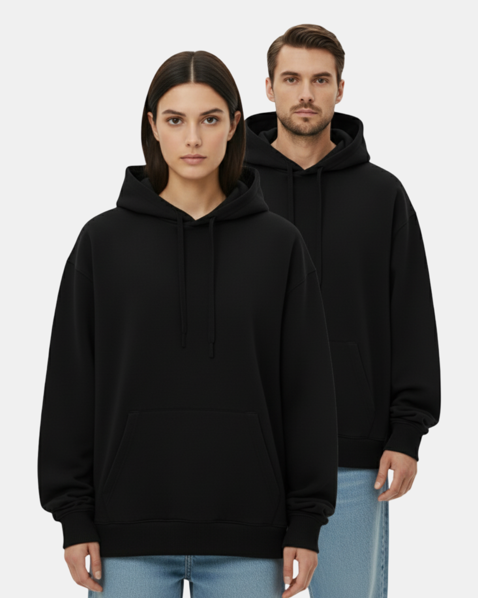BLACK UNISEX OVERSIZED BASIC HOODIE W25N