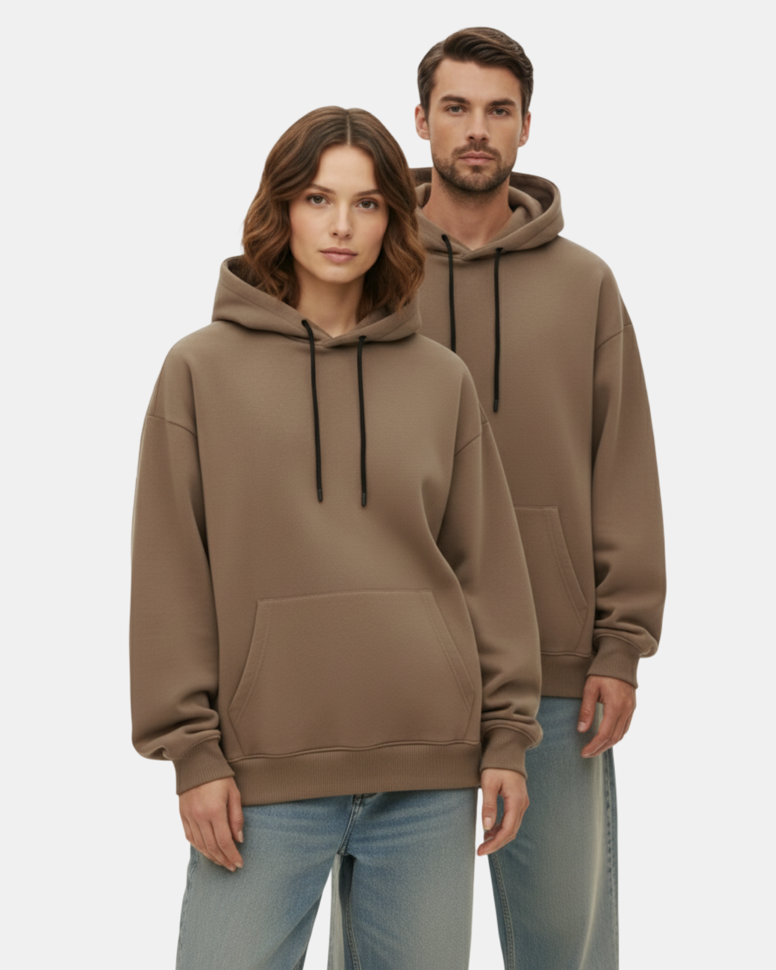 BROWN UNISEX OVERSIZED BASIC HOODIE W25N