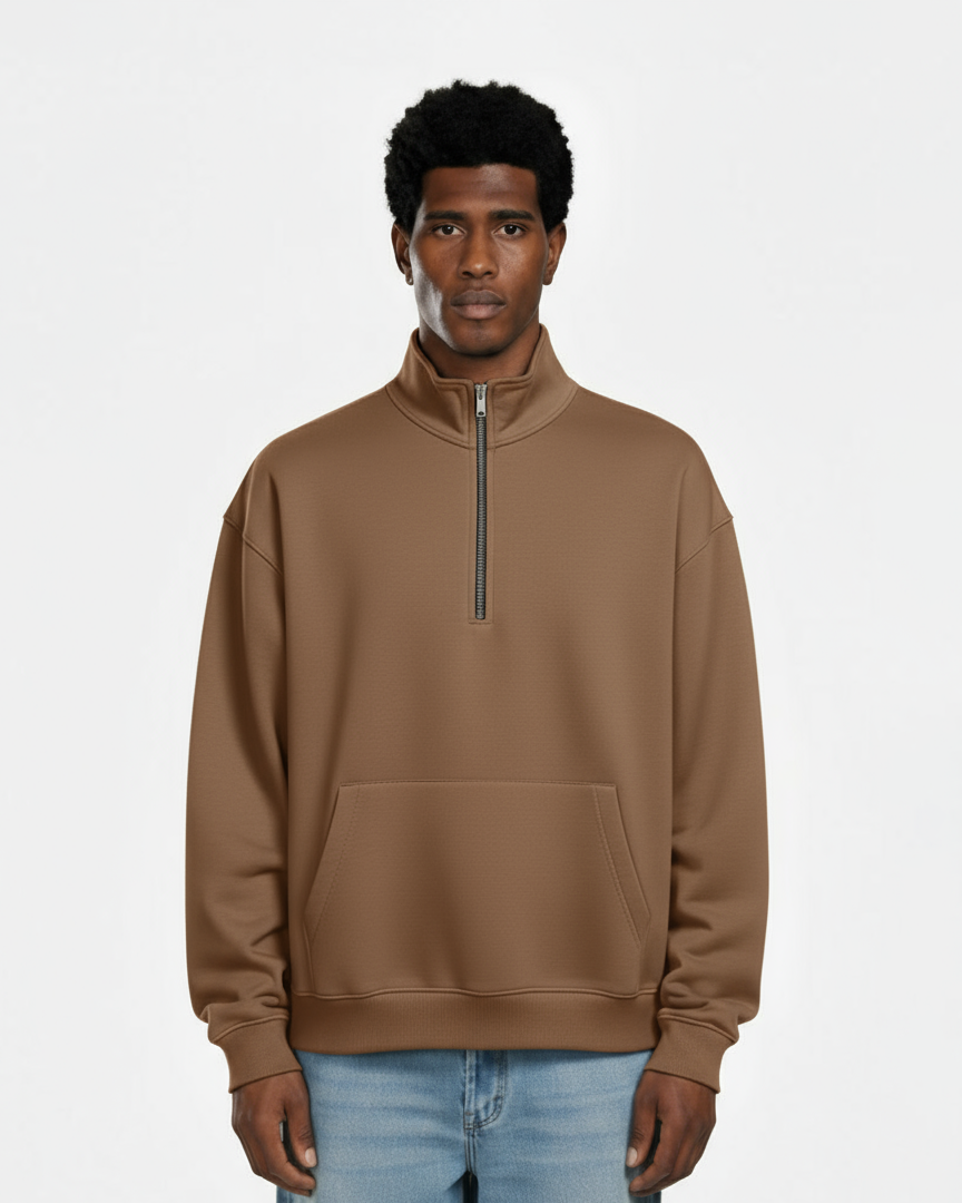 Stay effortlessly stylish and comfortable with this men’s quarter-zip sweatshirt in a COFFEE tone. Designed with a relaxed fit, it combines minimal aesthetics with functional details, making it ideal for both casual outings and laid-back layering. The soft fabric ensures all-day comfort, while the clean finish gives it a modern, versatile edge.