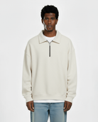 WHITE TEXTURED QUARTER-ZIP SWEATSHIRT W25N