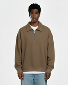 BROWN TEXTURED QUARTER-ZIP SWEATSHIRT W25N