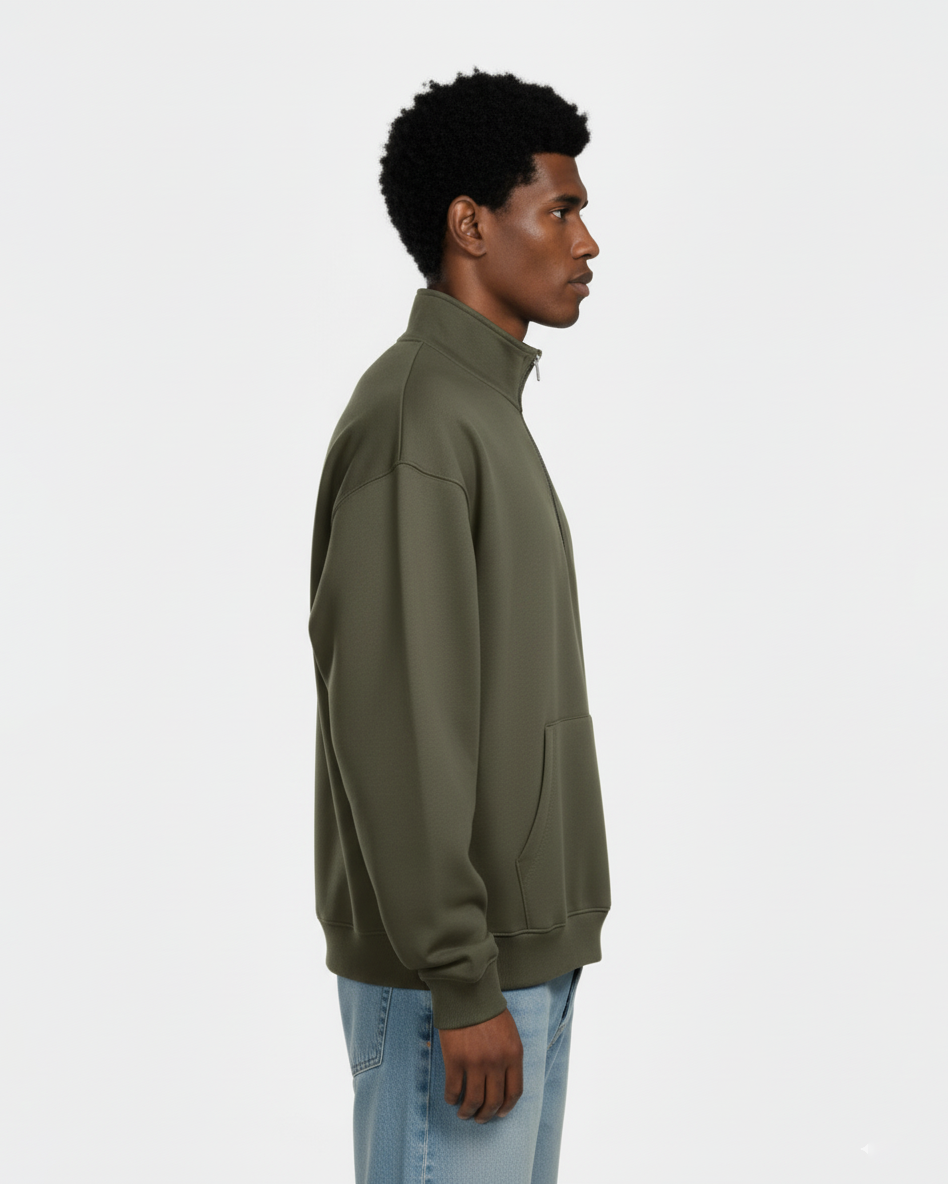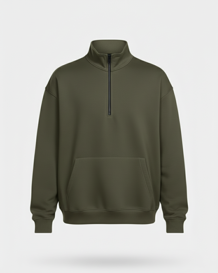 Design: Minimalist quarter-zip style with a stand collar for a sleek, contemporary look.