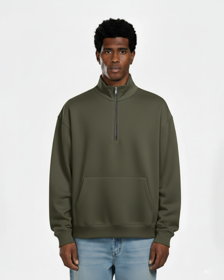OLIVE OVERSIZED QUARTER-ZIP SWEATSHIRT W25N