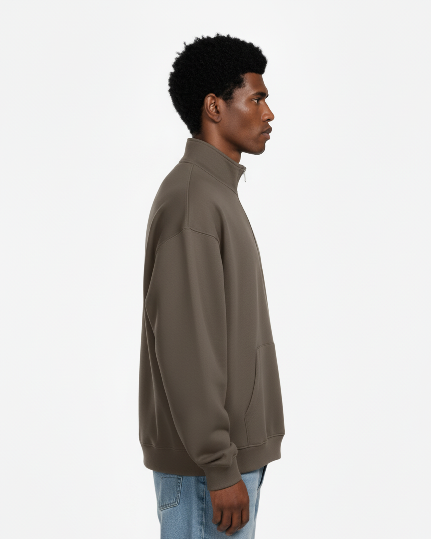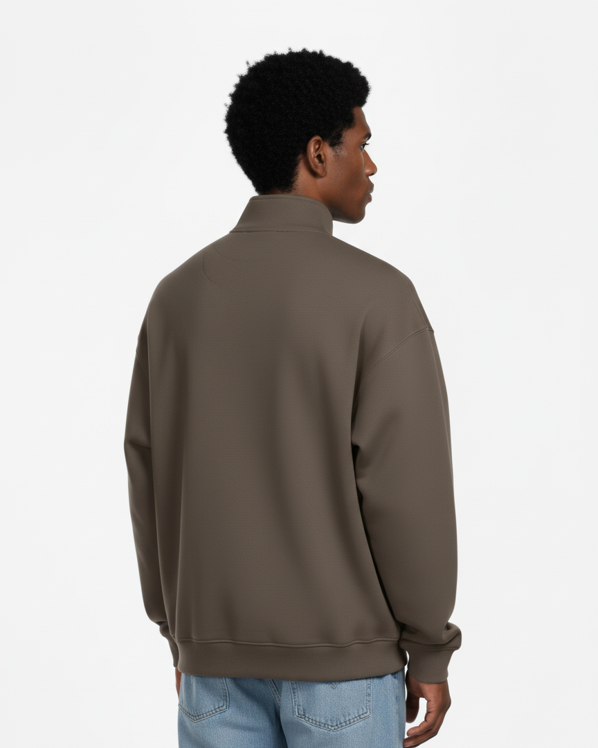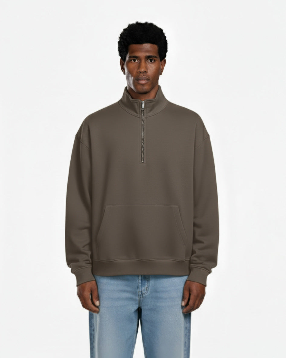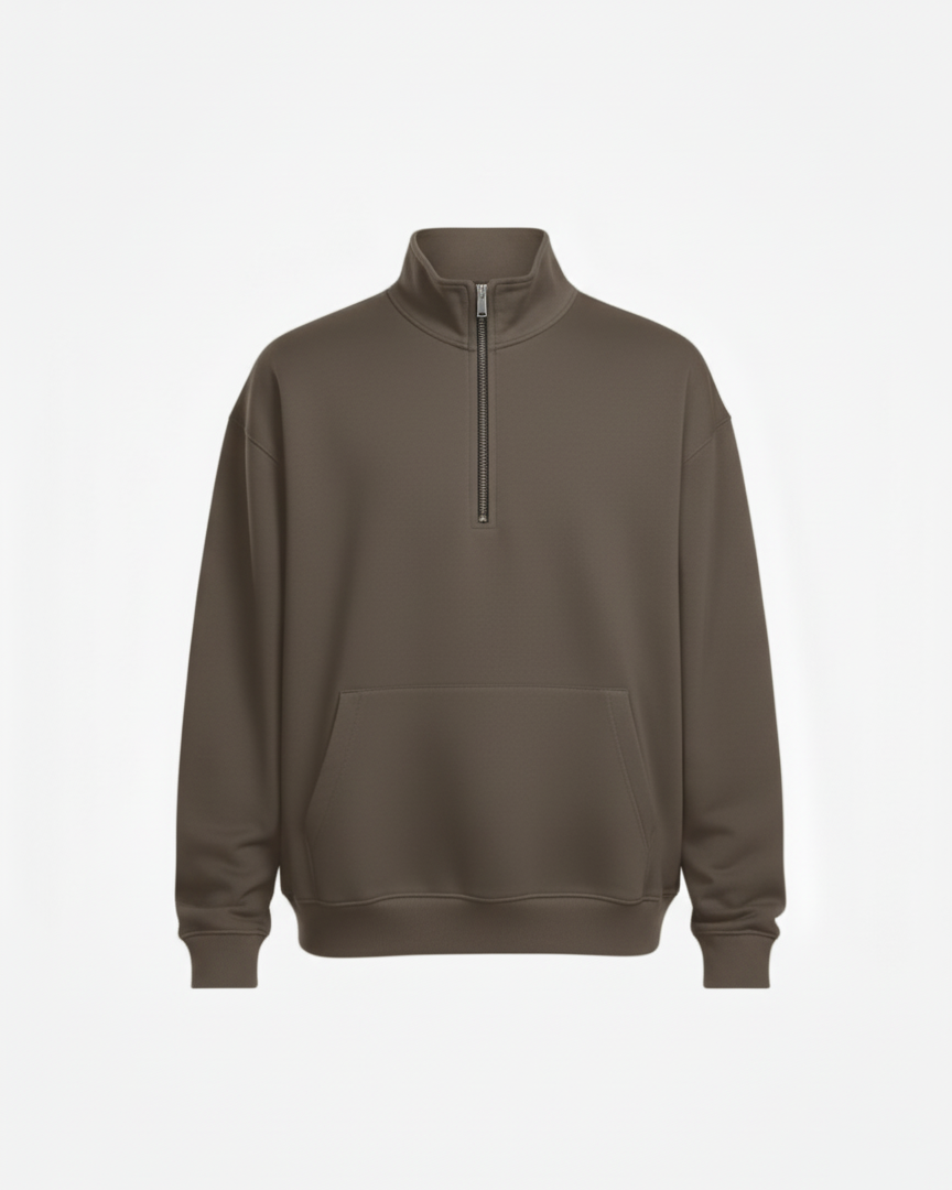 Stay effortlessly stylish and comfortable with this men’s quarter-zip sweatshirt in amocha tone. Designed with a relaxed fit, it combines minimal aesthetics with functional details, making it ideal for both casual outings and laid-back layering. The soft fabric ensures all-day comfort, while the clean finish gives it a modern, versatile edge.