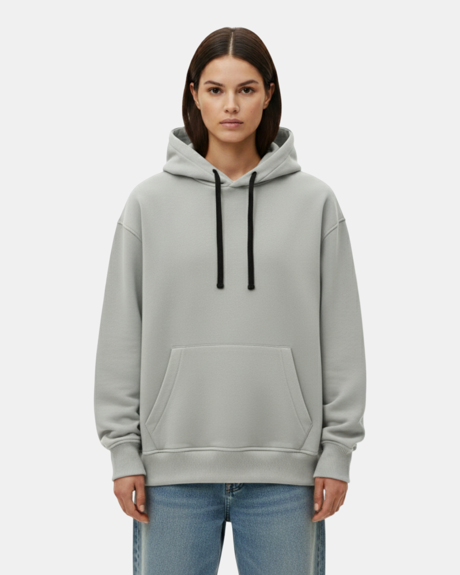 SILVER UNISEX OVERSIZED BASIC HOODIE W25N